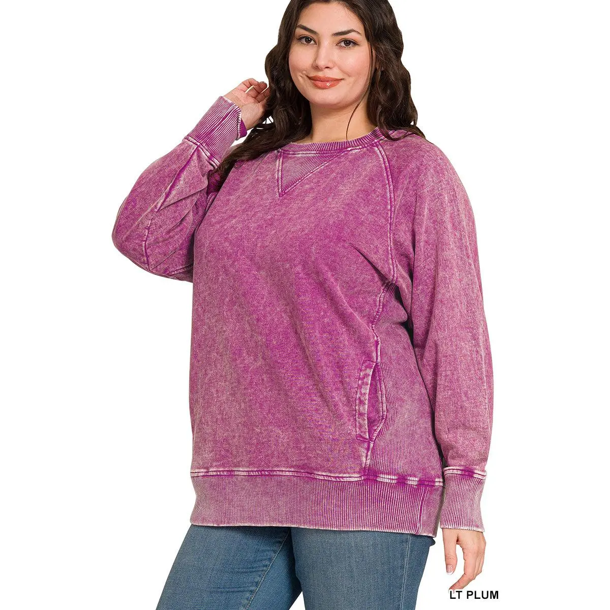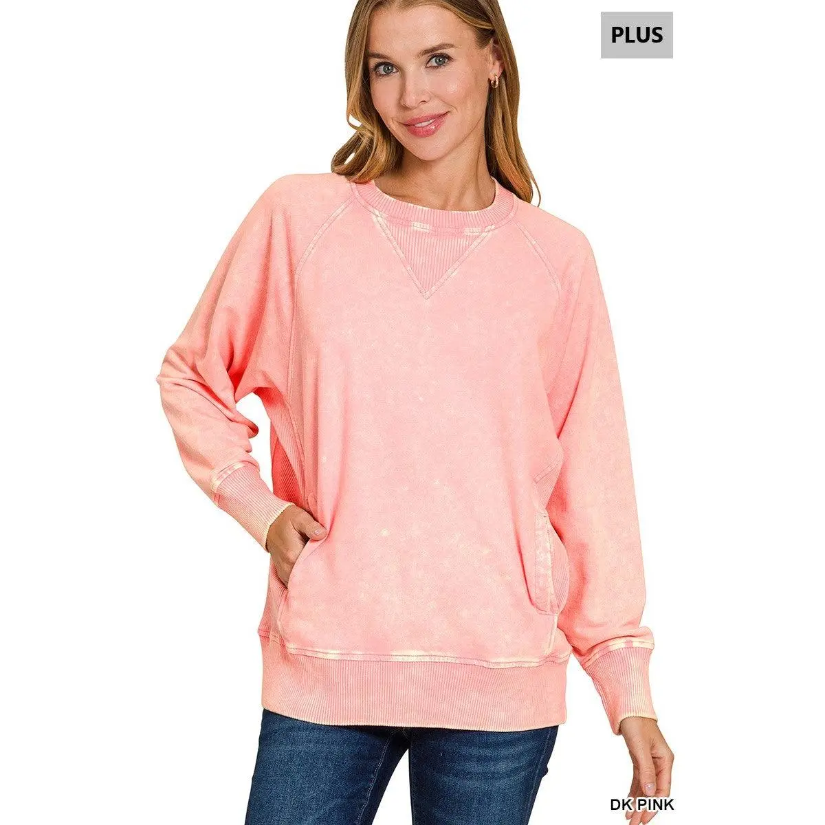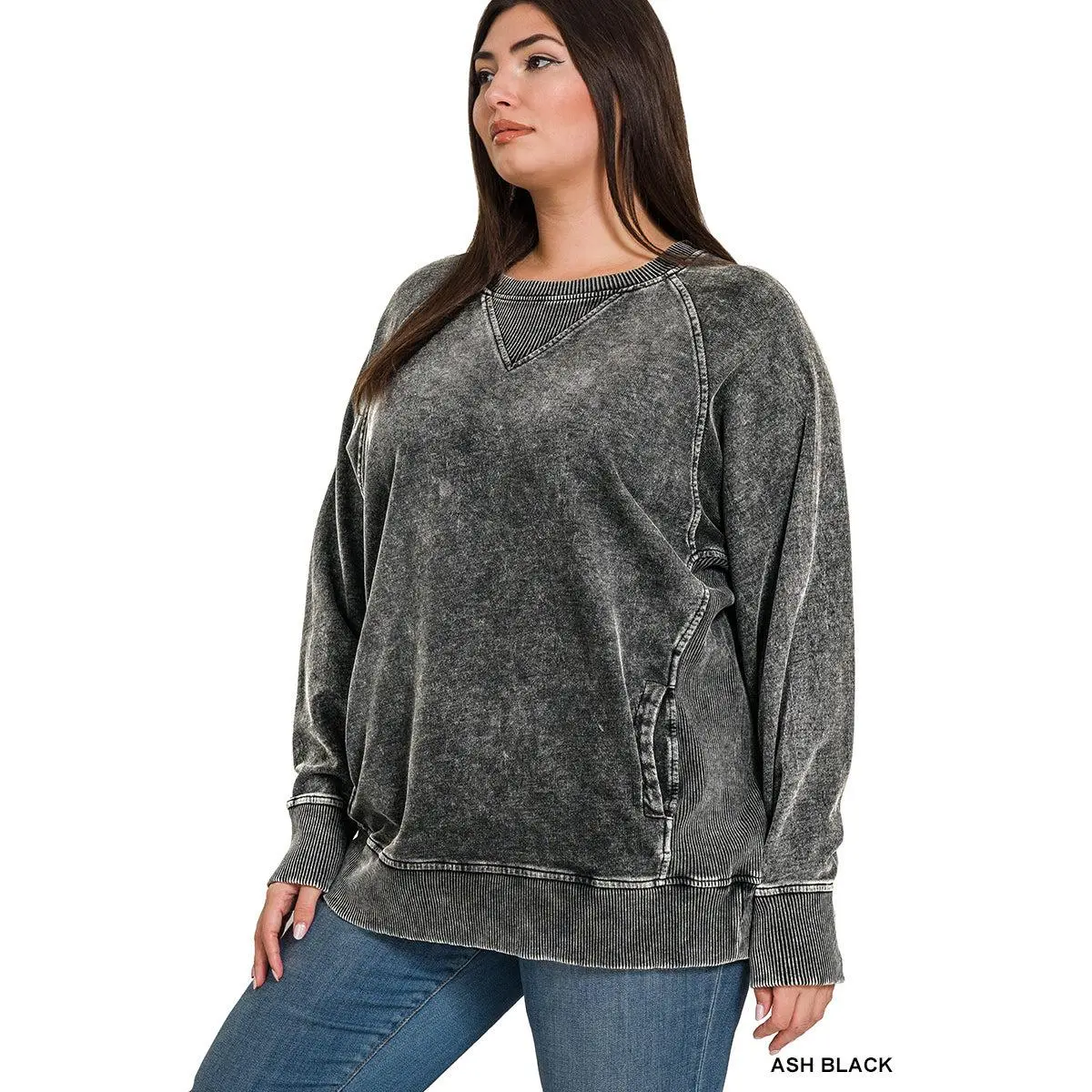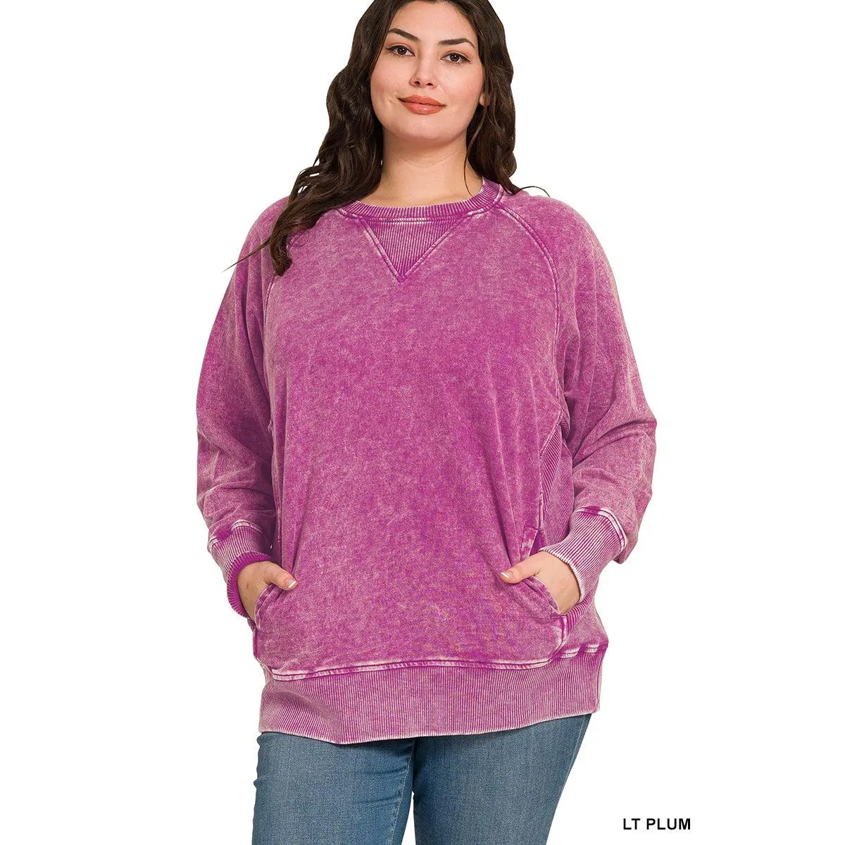 Zenana Plus Acid Washed French Terry Pullover with Pockets