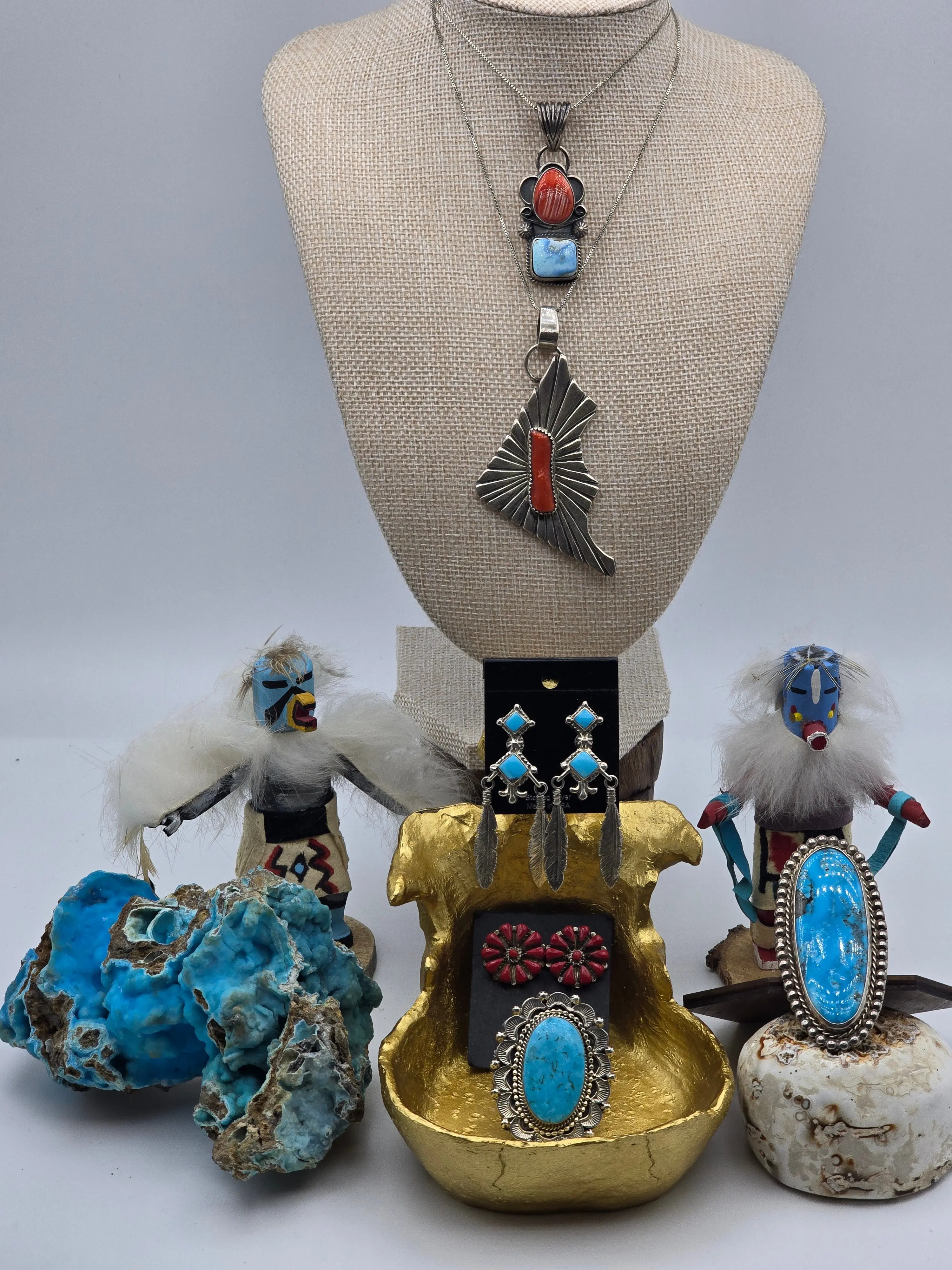 Sleeping Beauty earrings with silver feathers that dangle