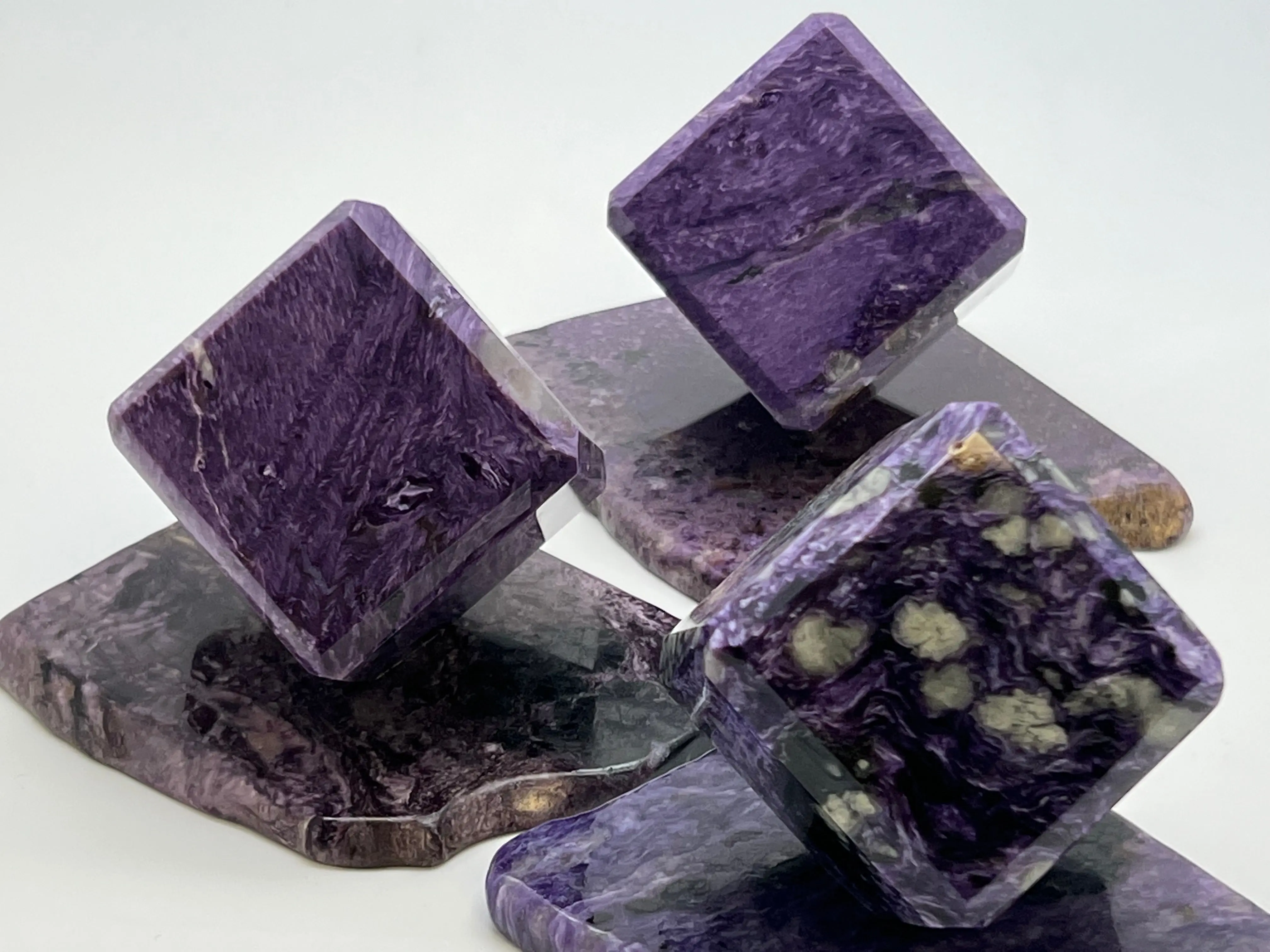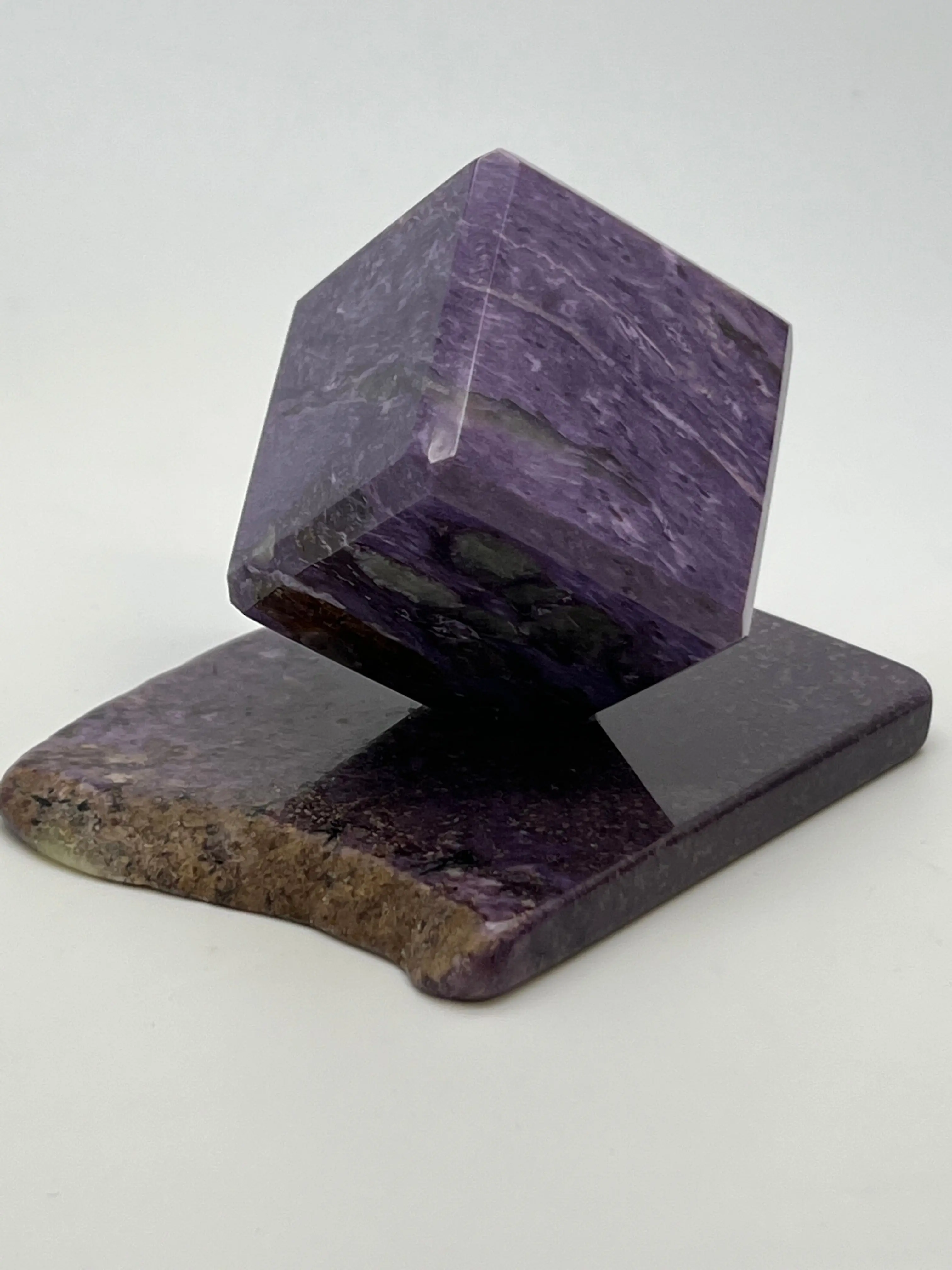 In alchemy and transformational work, Charoite is known as a stone of deep transmutation—turning shadow into strength, chaos into clarity, and emotional overwhelm into spiritual wisdom. Carved into a cube, a symbol of grounding, structure, and manifestation, its energy becomes even more focused, helping anchor spiritual experiences into the physical world and support steady, empowered growth.