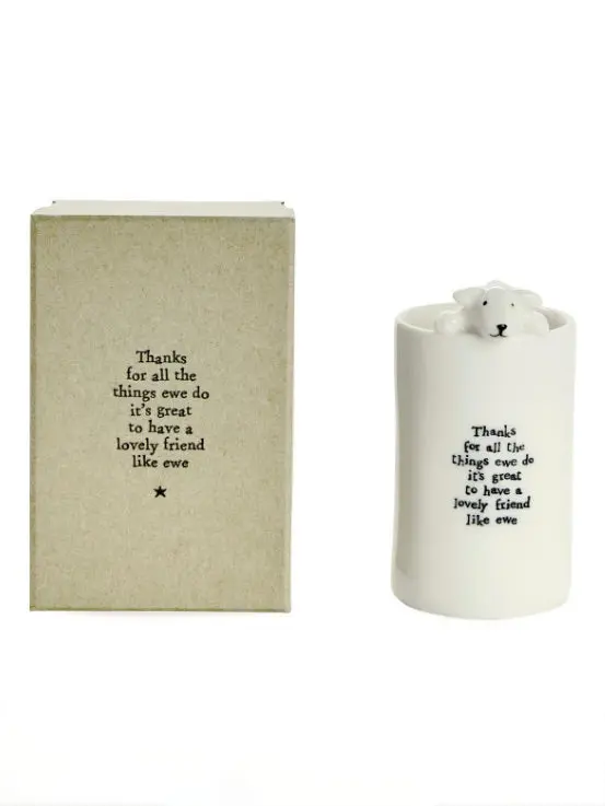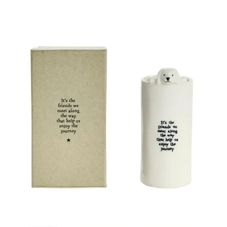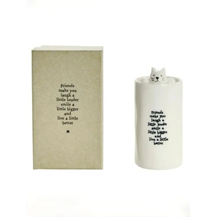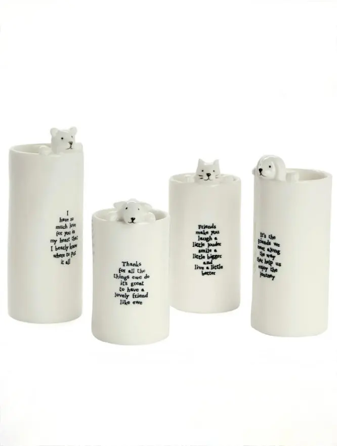 Bring joy to every corner of your home with these charming porcelain vases from East of India. This delightful set features four unique animal designs, each adorned with heartwarming sentiments like "Friends Make you Laugh" and "Thanks for all the Things." Crafted from delicate porcelain, these whimsical pieces work beautifully filled with fresh flowers or displayed empty as cheerful decor accents. Perfect for gifting to friends or treating yourself to a dose of everyday happiness.