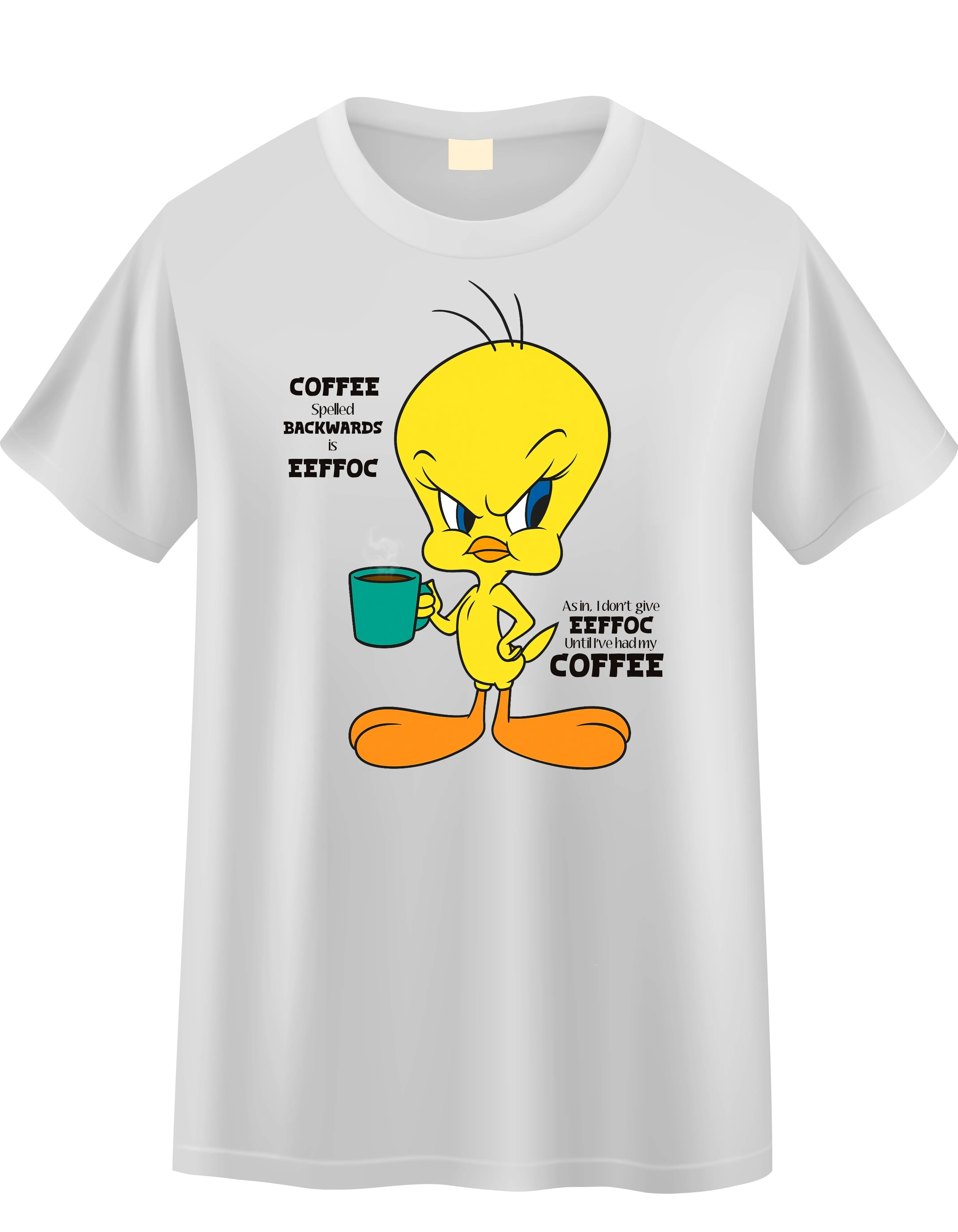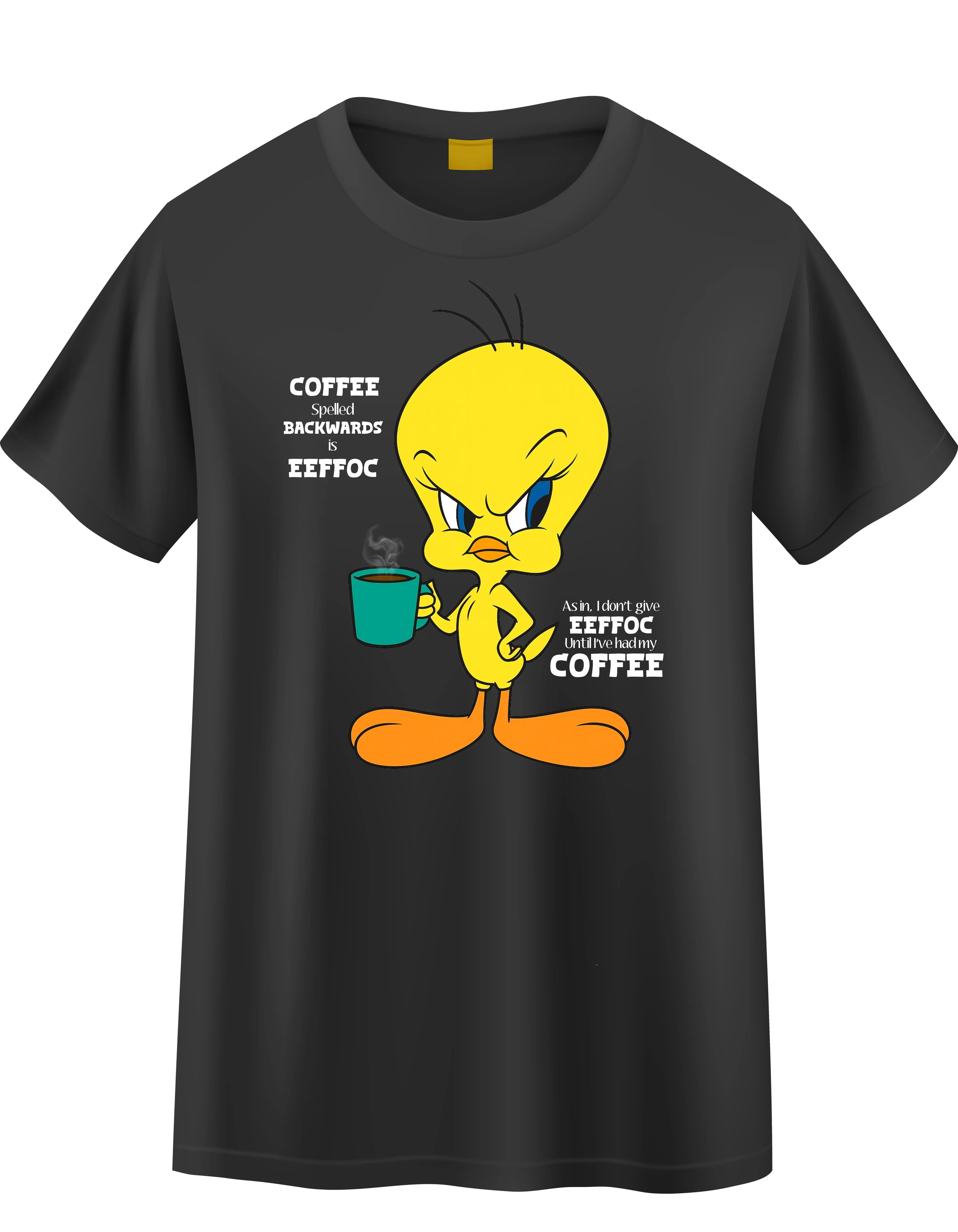 Start your day with a smile and a sip! This Tweety-themed tee is perfect for fans who need a little birdy boost to get going. Brighten your mornings with Tweety’s cheerful charm while enjoying your favorite brew. A fun and playful way to fuel your day!