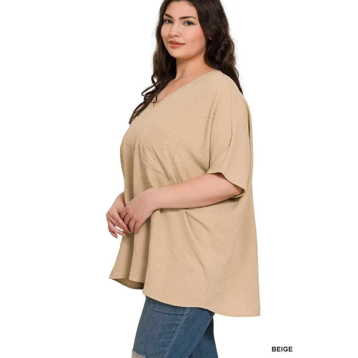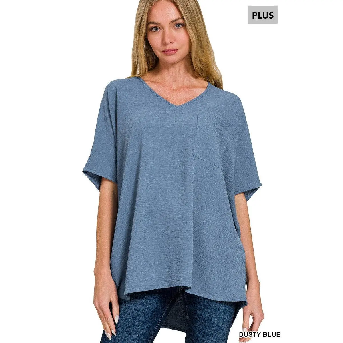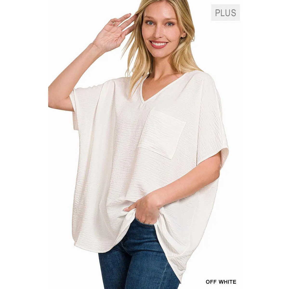 Plus Woven Airflow V-Neck Dolman Short Sleeve Top