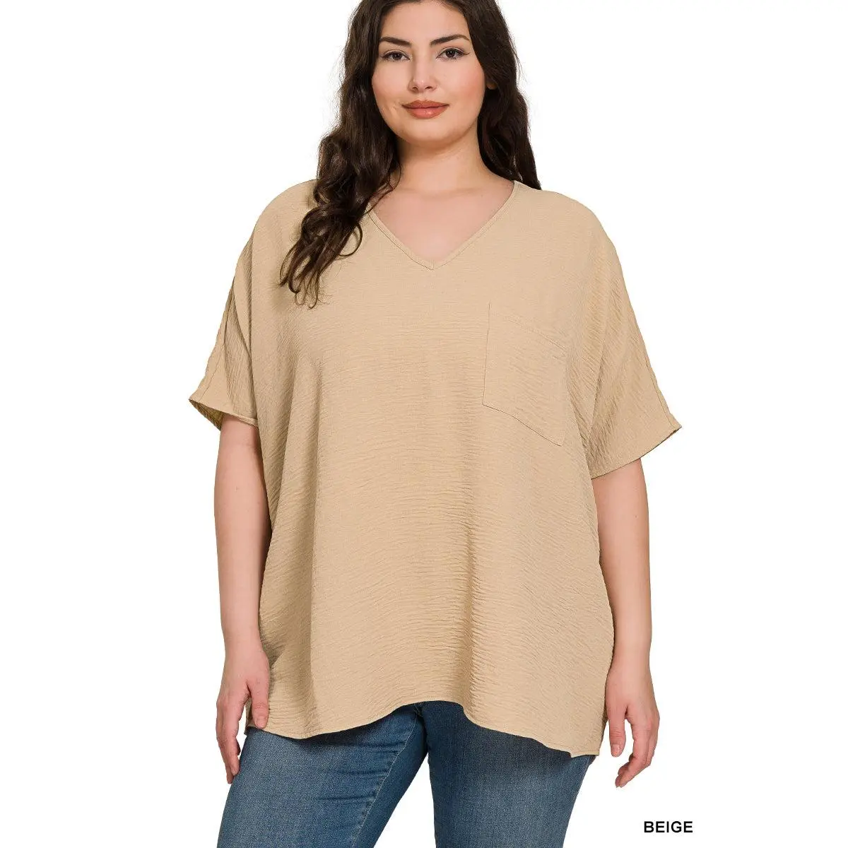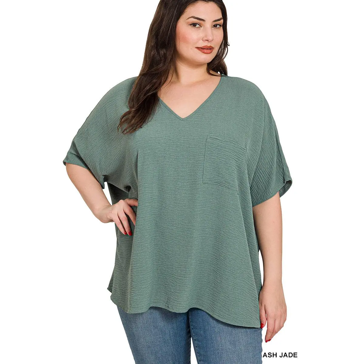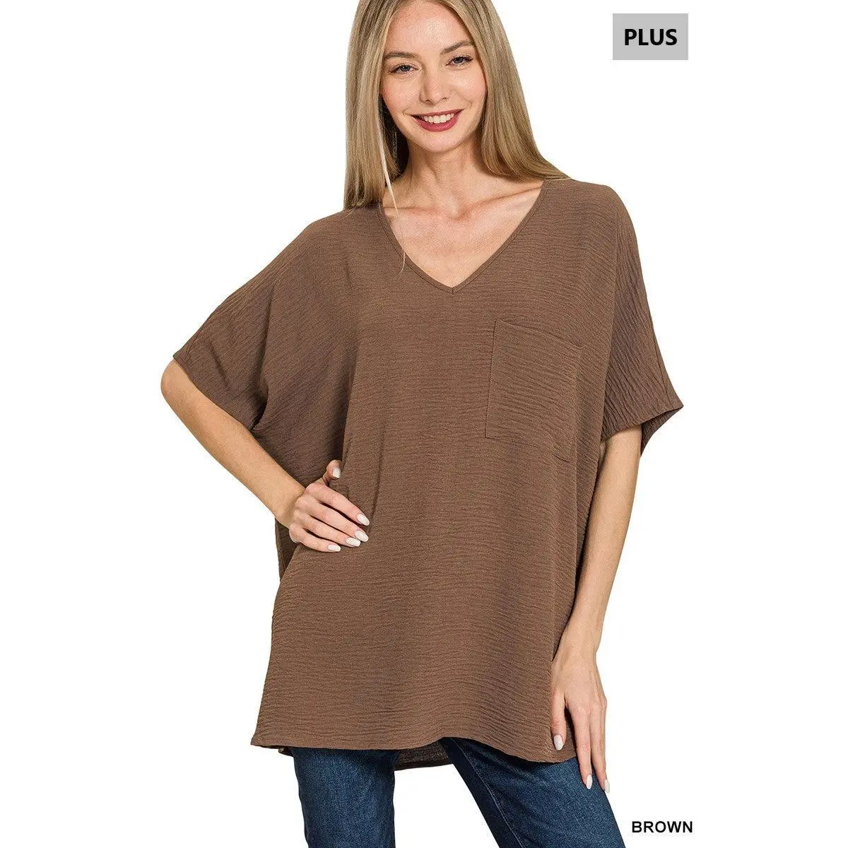 Plus Woven Airflow V-Neck Dolman Short Sleeve Top