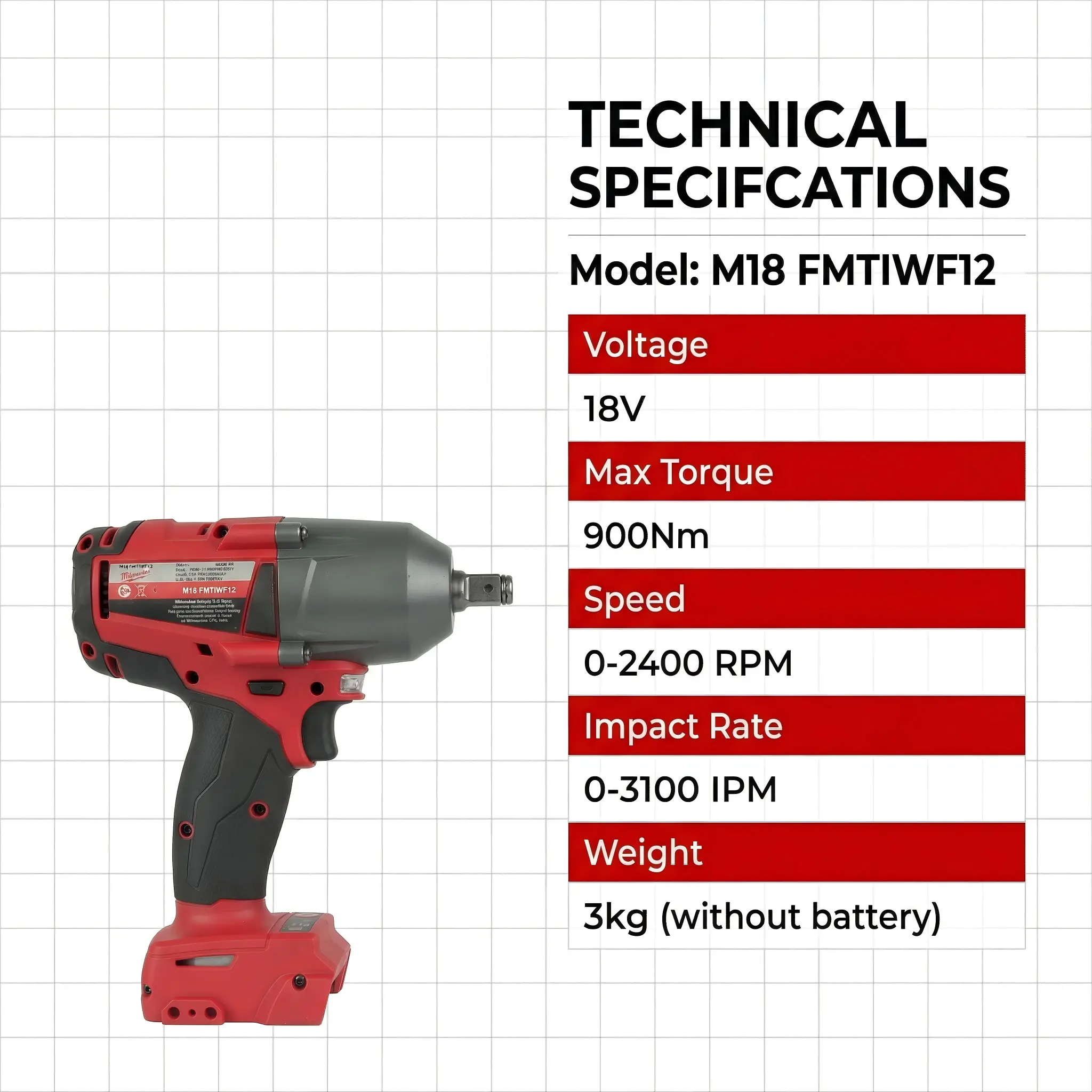 Milwaukee M18 FMTIWF12 18V Impact Wrench With Battery And For Automotive Repair 900Nm Cordless High-Torque power brushless impact wrench powertools wood plastic durable tool rapid charger woodworking