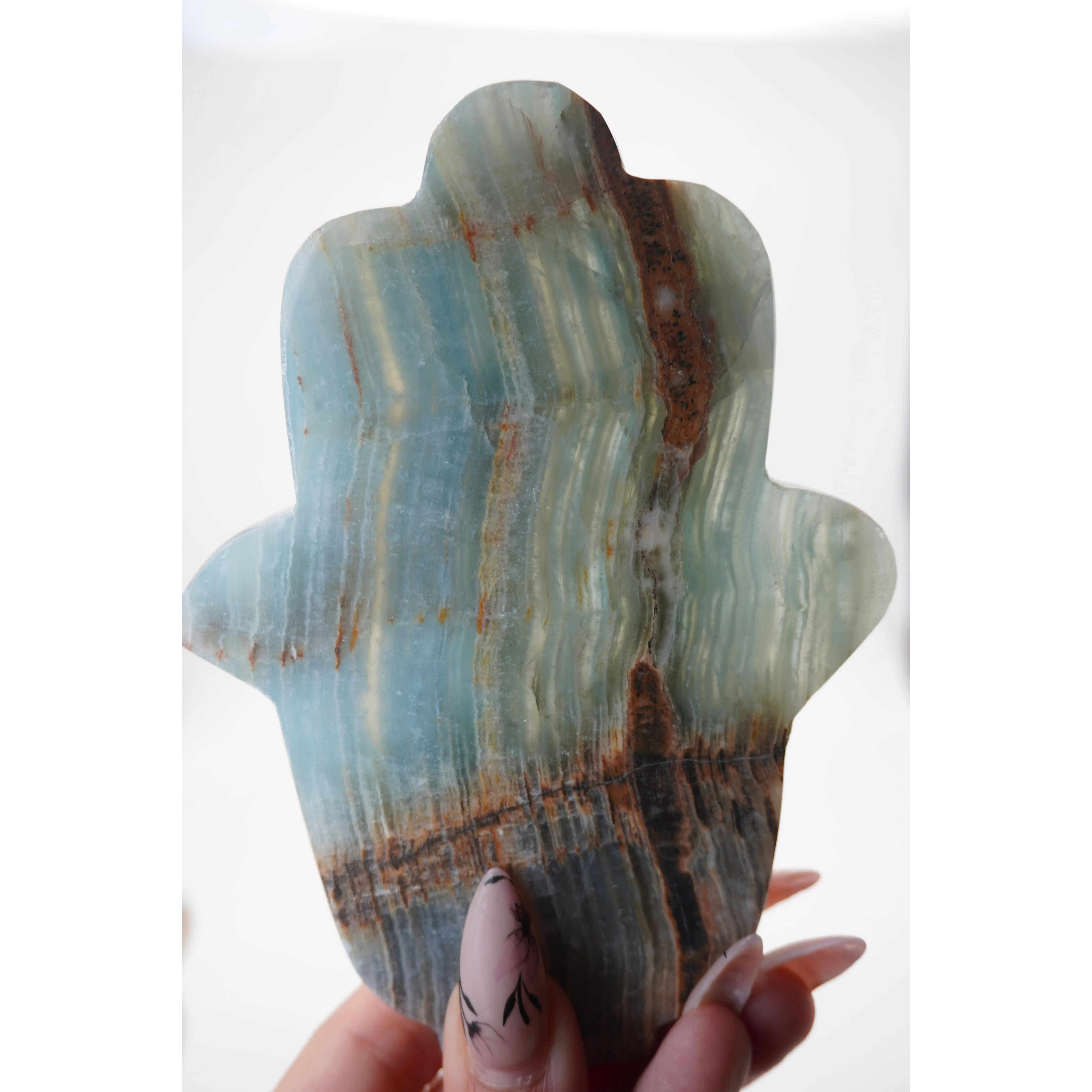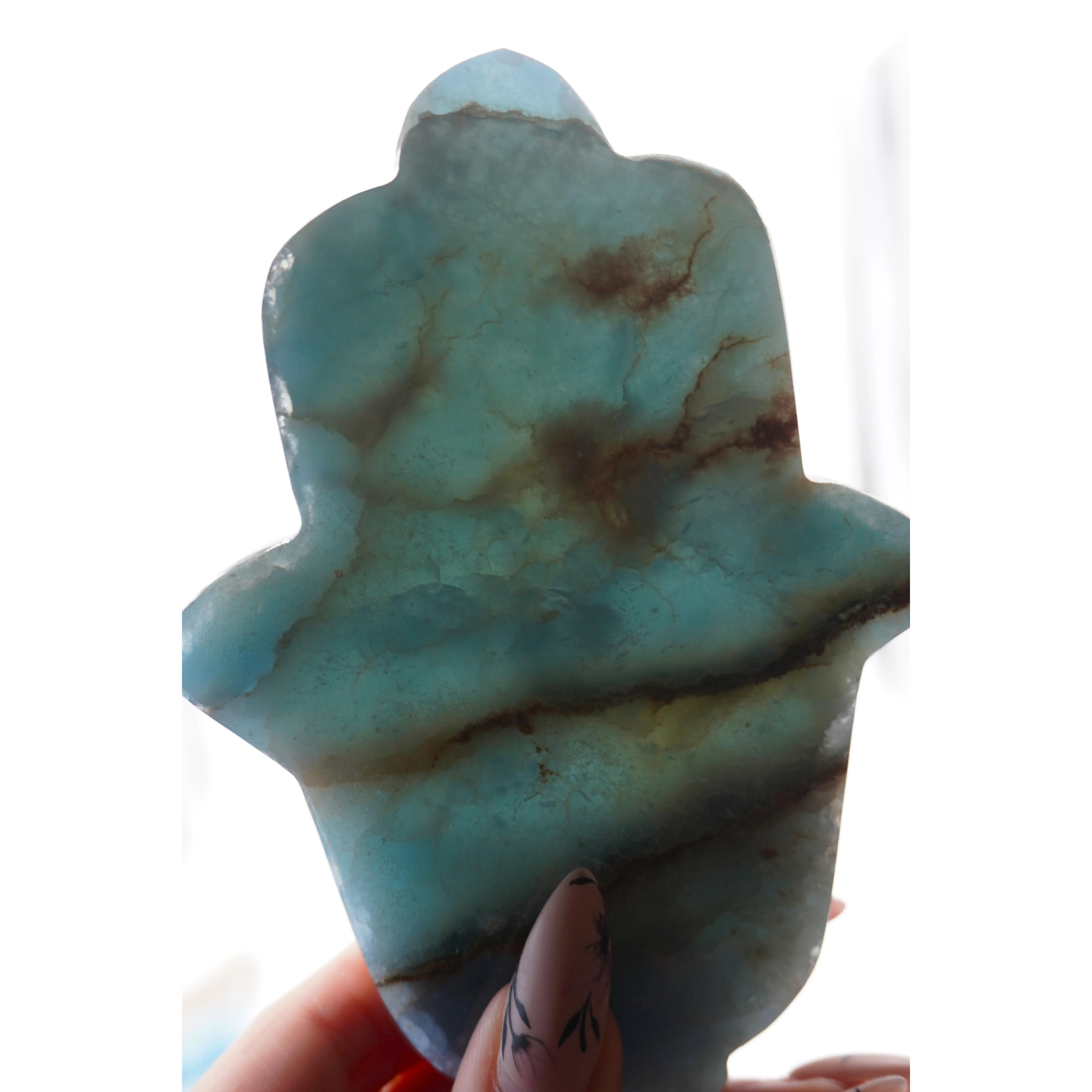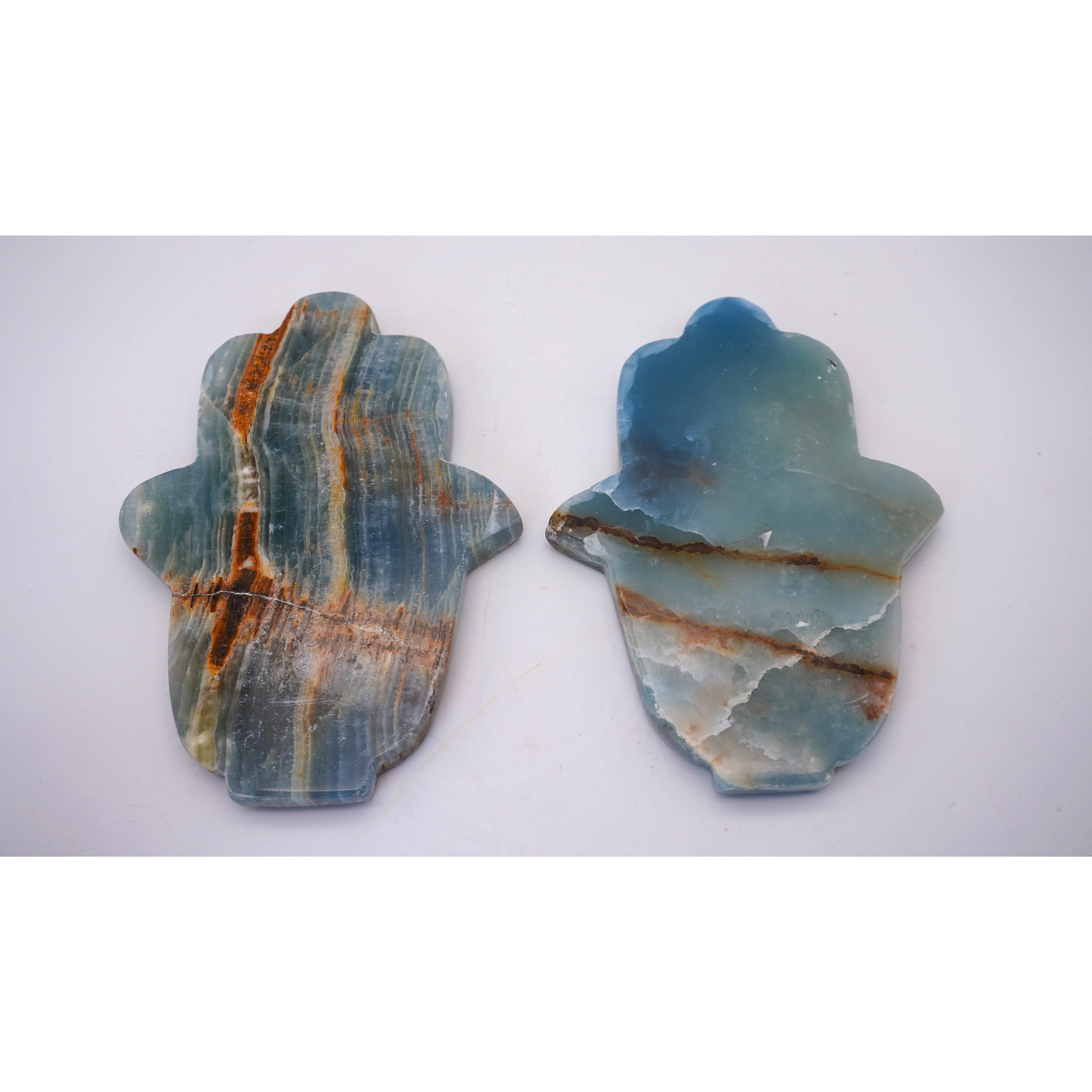 Lemurian Blue Calcite Hamsa Carvings, meticulously crafted to combine the powerful energies of Lemurian Blue Calcite with the protective symbolism of the Hamsa. These exquisite carvings are perfect for enhancing your spiritual practices and adding a touch of serenity to your sacred space.