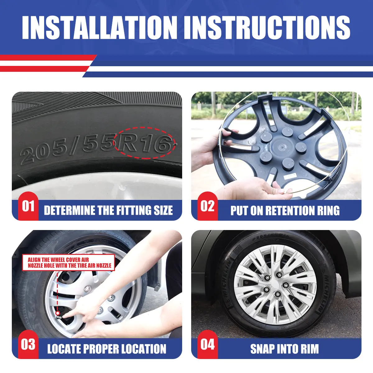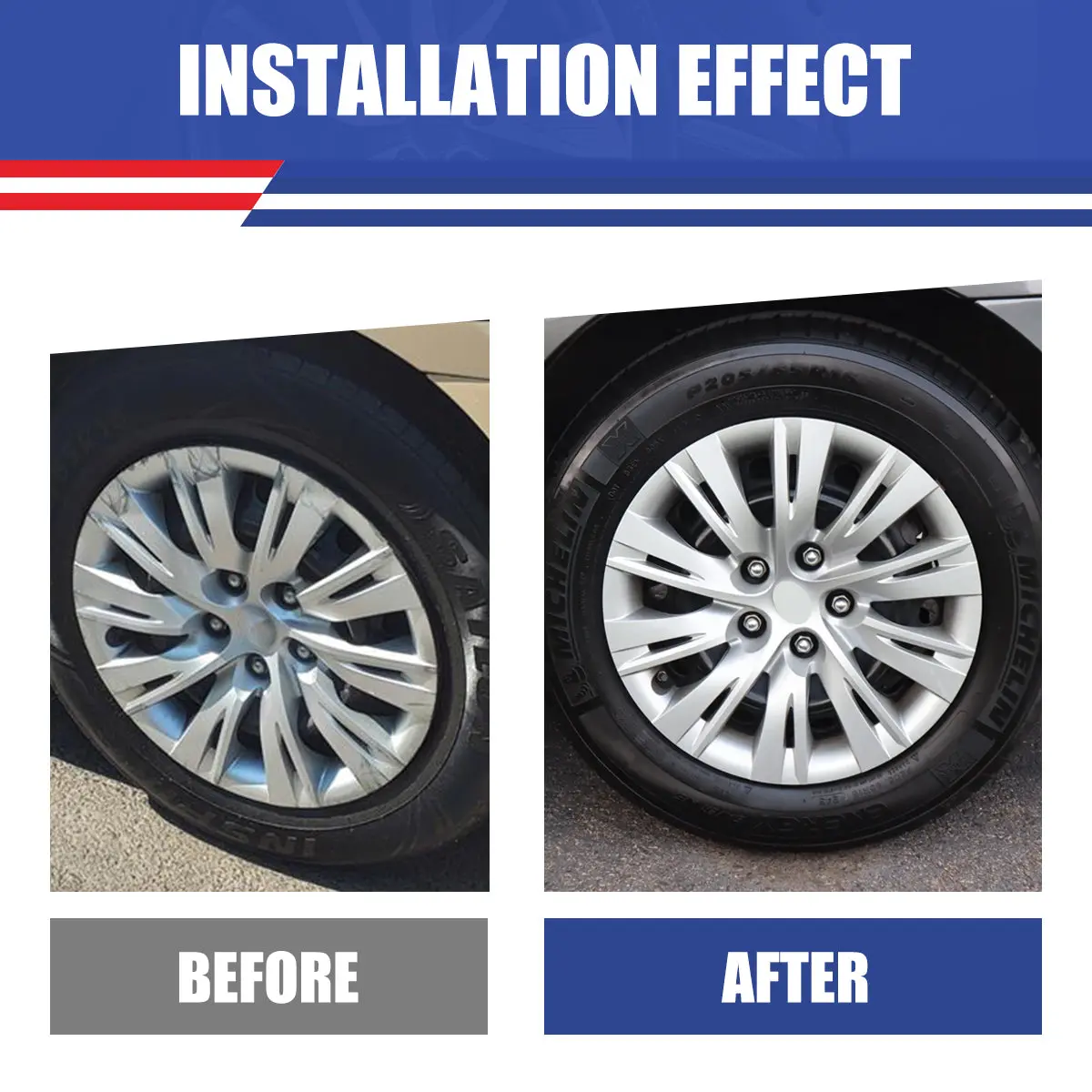 ·Easy Installation:The snap-on design makes installation quick and hassle-free. Simply snap the hubcaps onto your wheels for an instant transformation.
