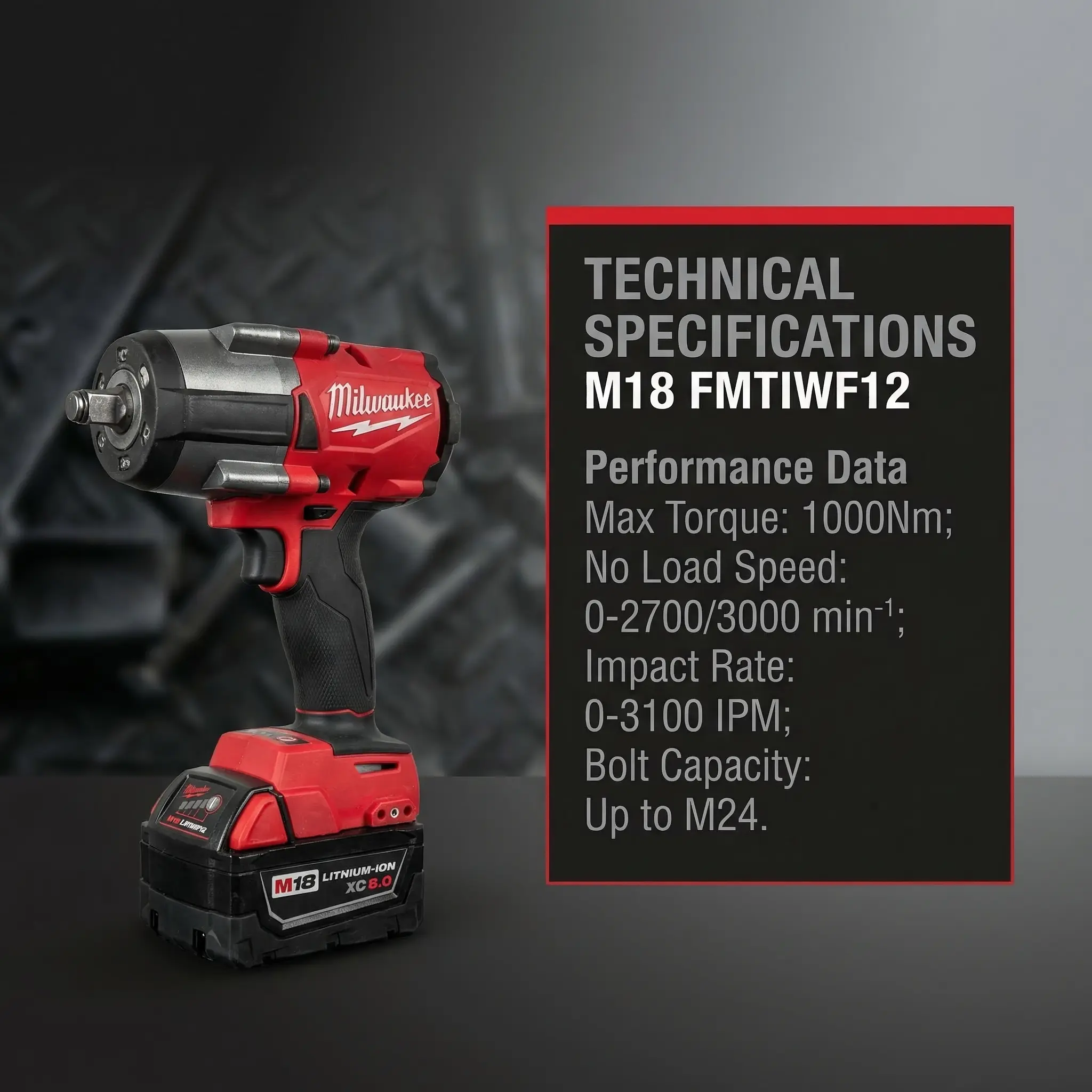Milwaukee M18 FMTIWF12 18V Cordless Impact Wrench Suitable for Auto Repair and Industrial Assembly Electric Wrench Tool 1000Nm High Torque Output Multi-Speed Control