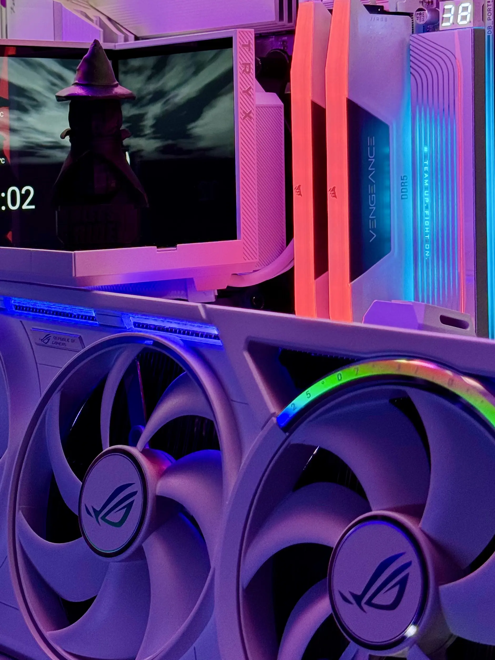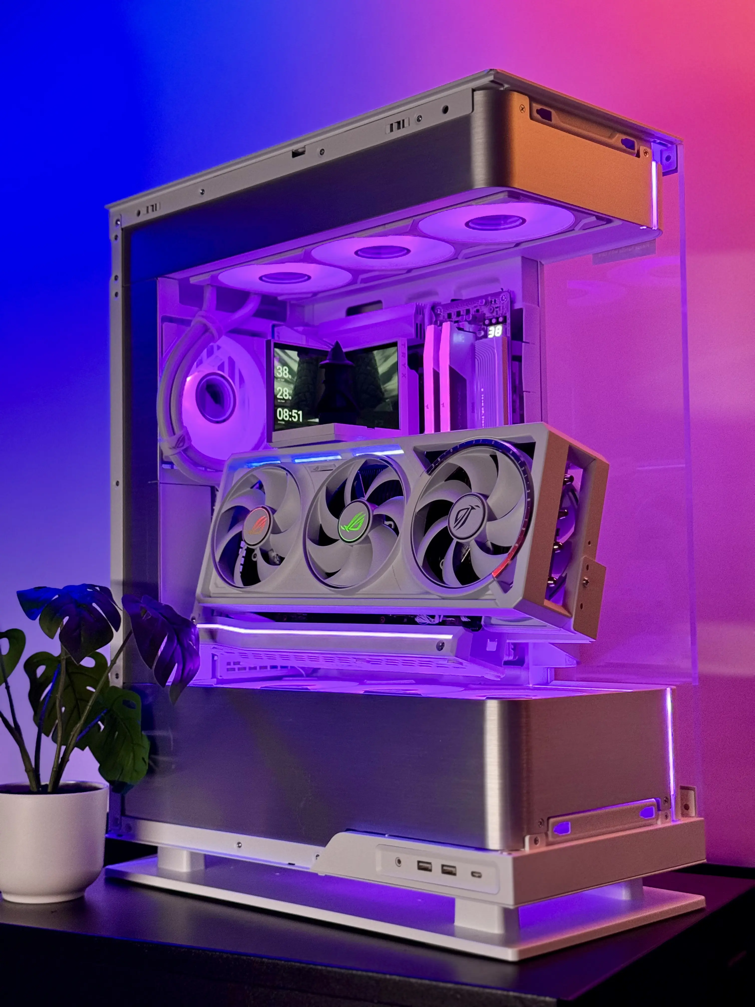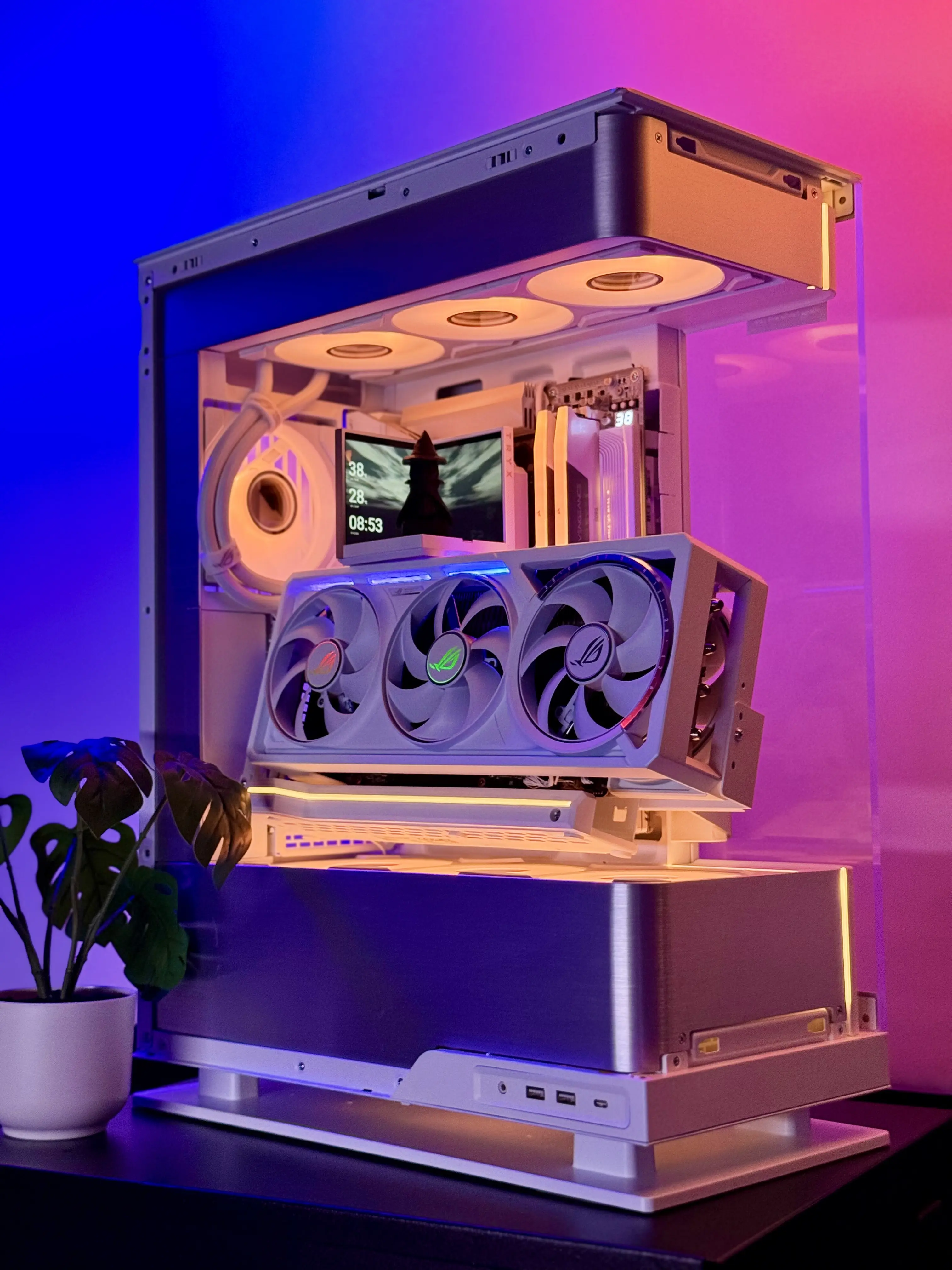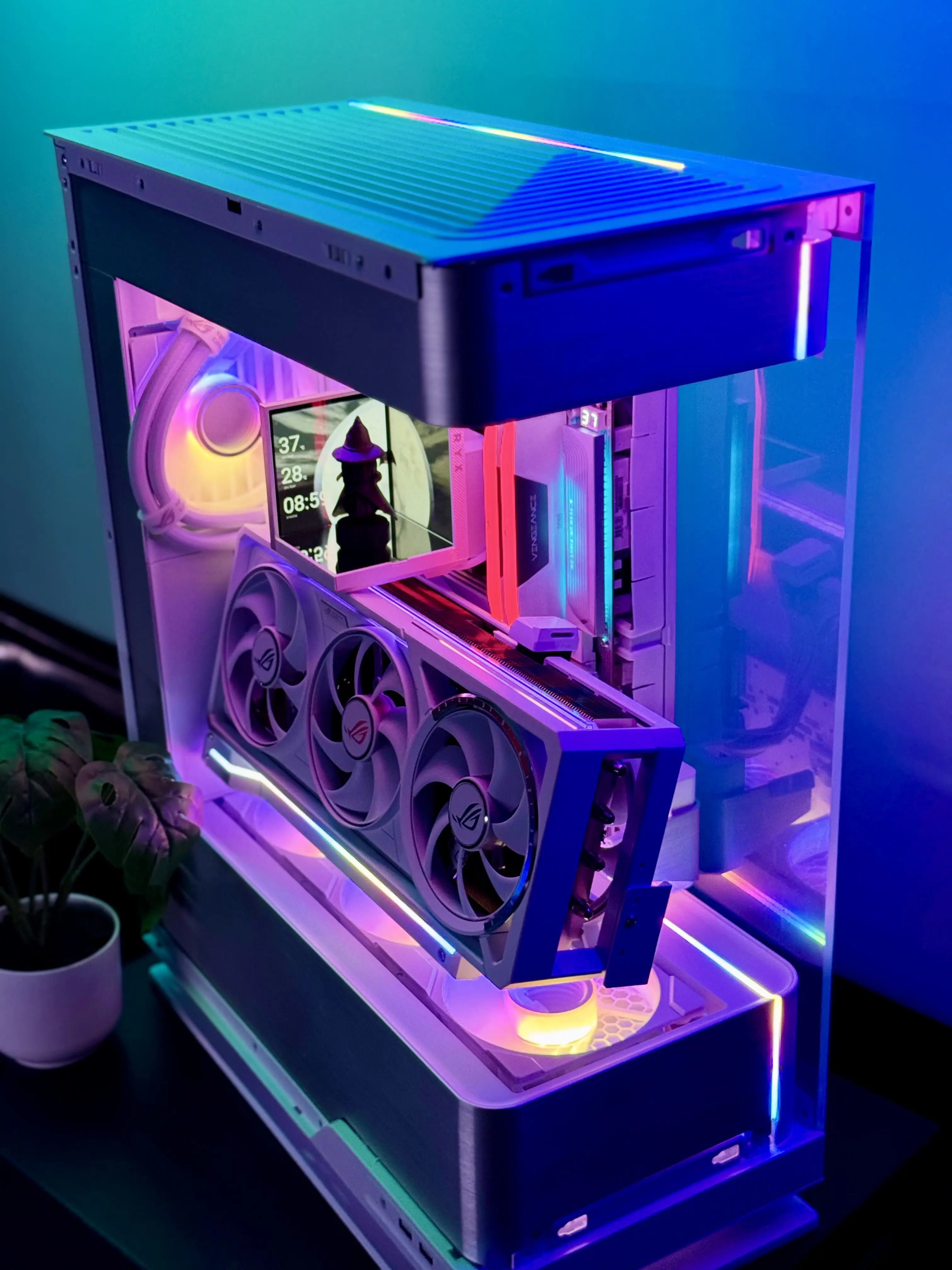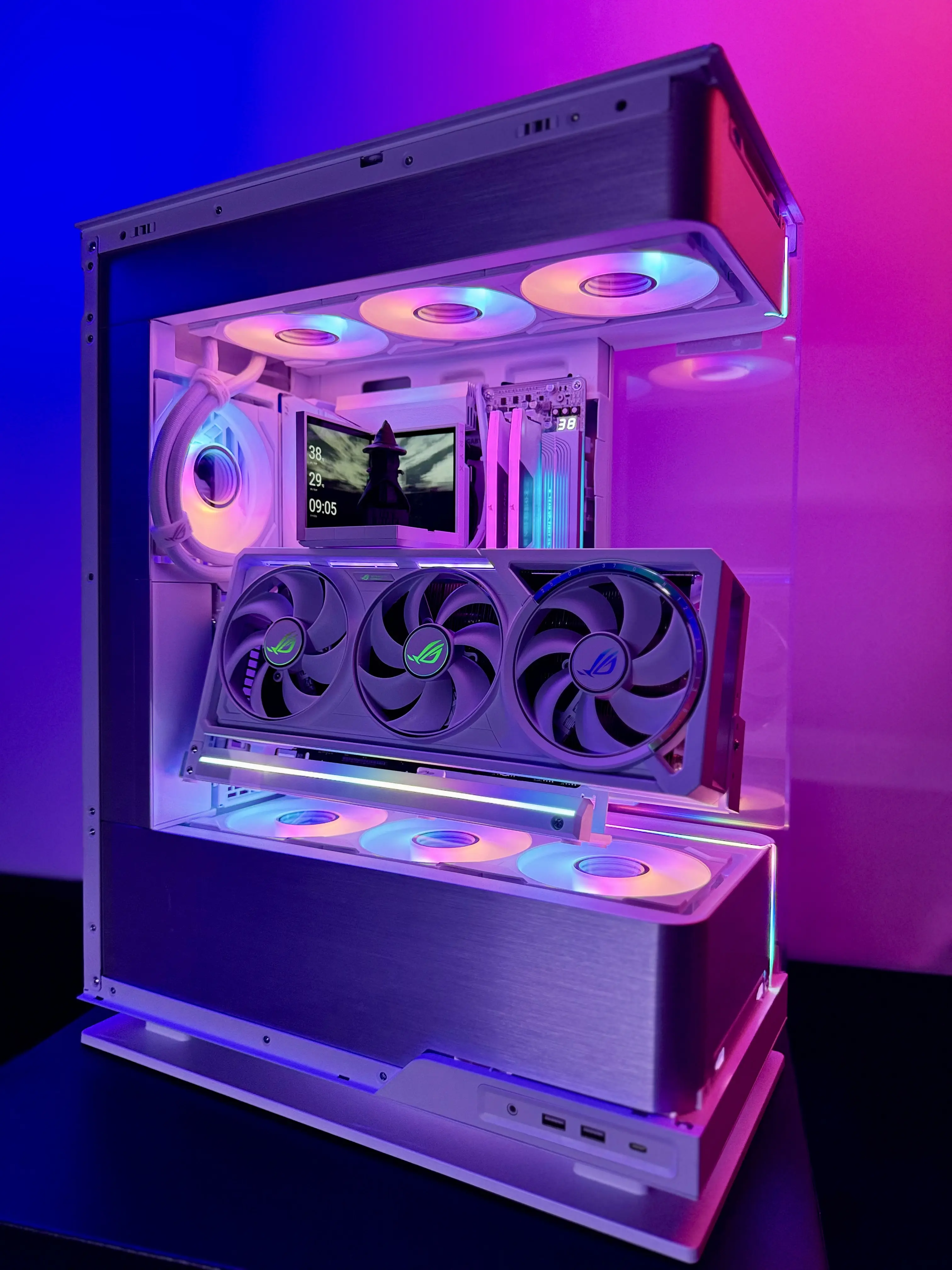 **WHITE BUILD. Includes The Burnt Peanut "Let's Ride!" Wizard figurine. Vertical GPU Mount has a tilting option for an incredible look and improved vertical mounted cooling.**