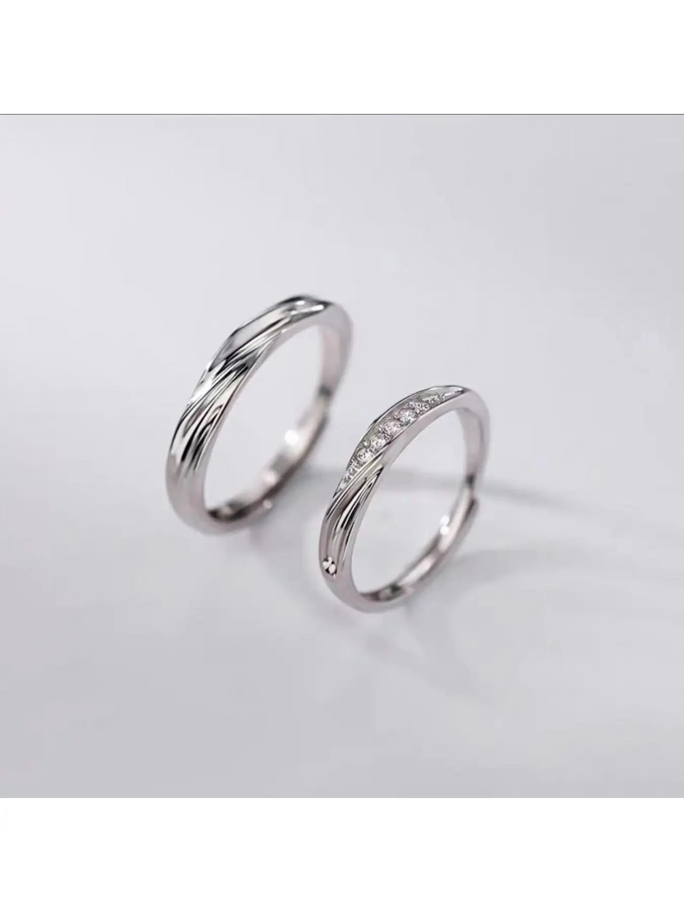Fashion Jewelry - Adjustable unisex stainless steel Mobius rings with delicate and lightweight groove design; perfect for weddings, couples, and Valentine's Day gifts.