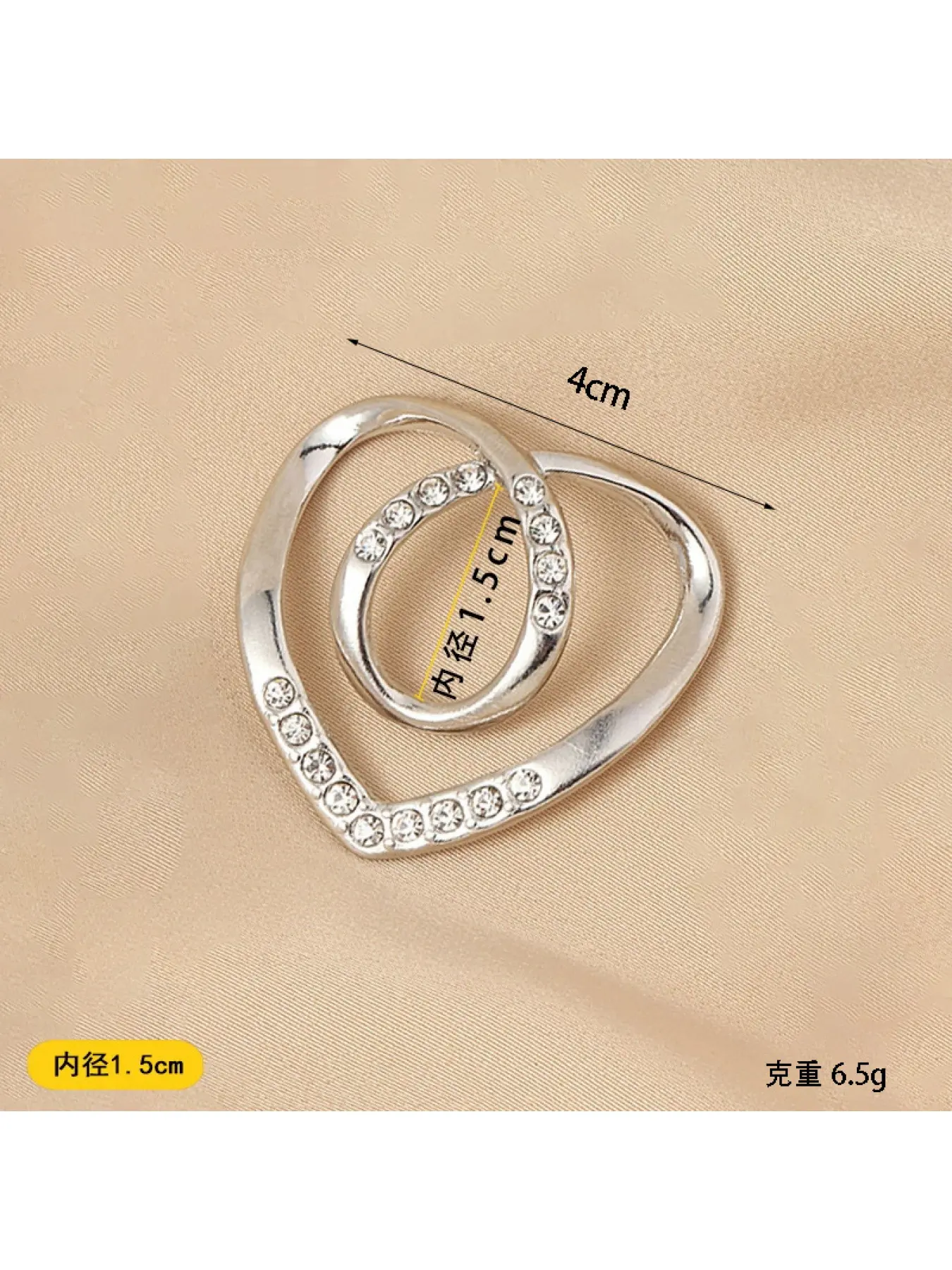 Hem knotting, heart-shaped pearl and rhinestone buckle, scarf buckle, versatile fastener for shirts and T-shirts.