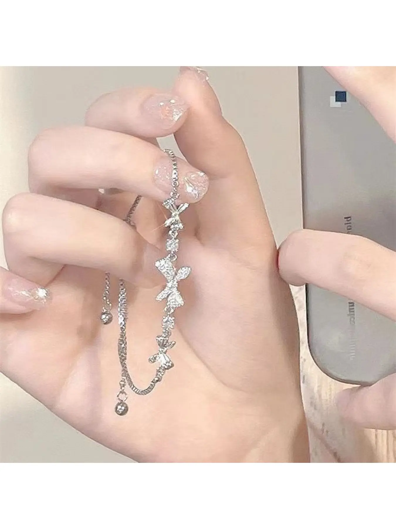 Zircon bow sparkling sweet women's silver crystal aesthetic bracelet - silver