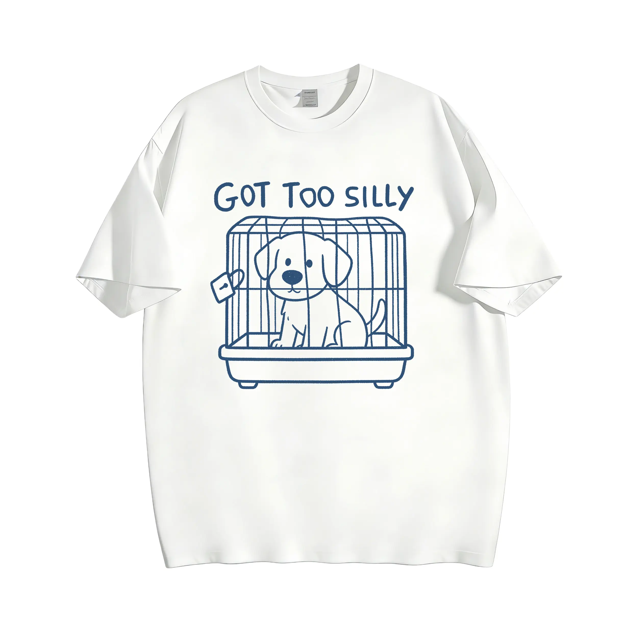 Our original, never-duplicated viral-worthy graphic leans into the iconic, universally loved dog parent meme, with every detail crafted for maximum cuteness and relatability: a sweet, innocent hand-drawn puppy, sitting calmly in his crate after getting a little too silly and playful, with a tiny lock on the cage to drive home the “time out” vibe. Above the puppy, our iconic slogan “GOT TOO SILLY” is printed in a playful, hand-drawn font that matches the soft, cozy aesthetic of the design. This isn’t just a cute dog drawing — it’s a hilarious, relatable way to show off your love for your pup, and laugh at your own chaotic, silly moments, whether you’re a pet owner who lives this line every day, or just someone who loves cute, funny meme tees that make people smile.