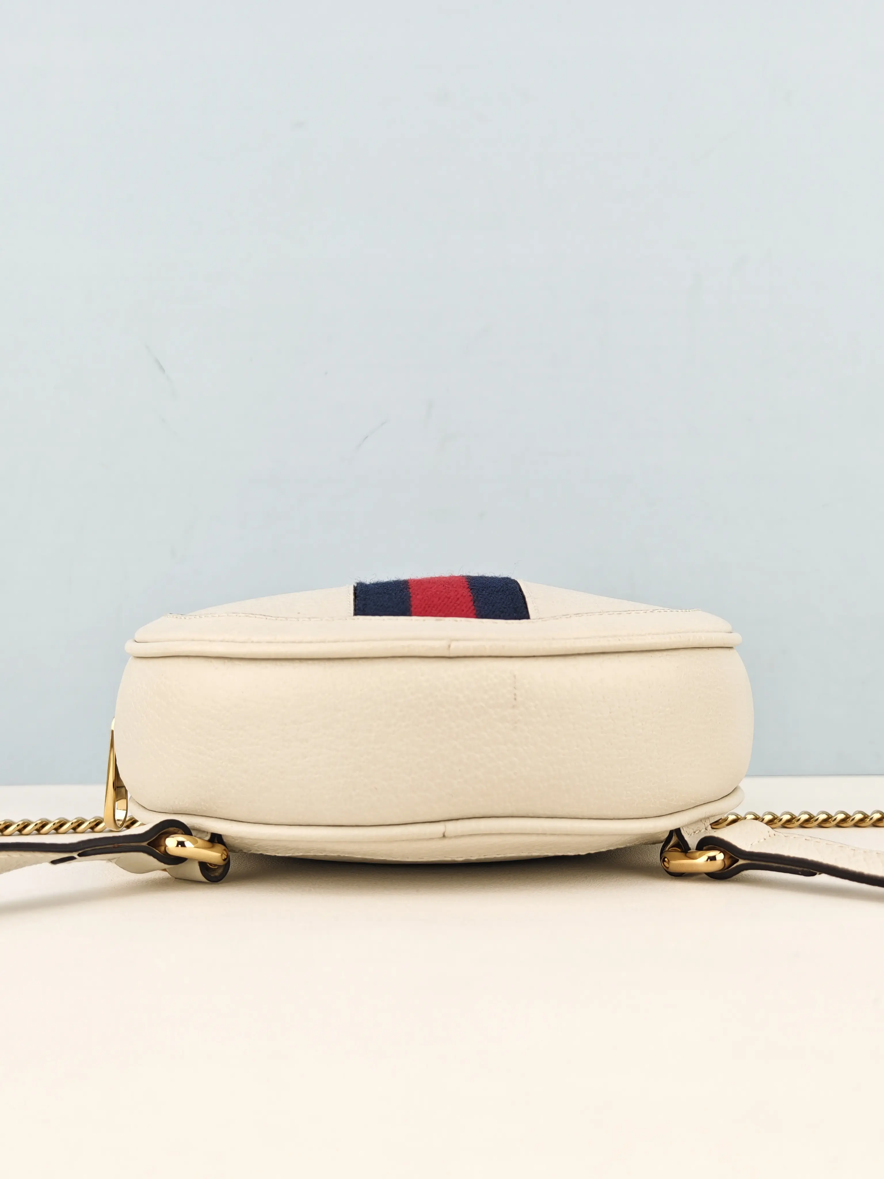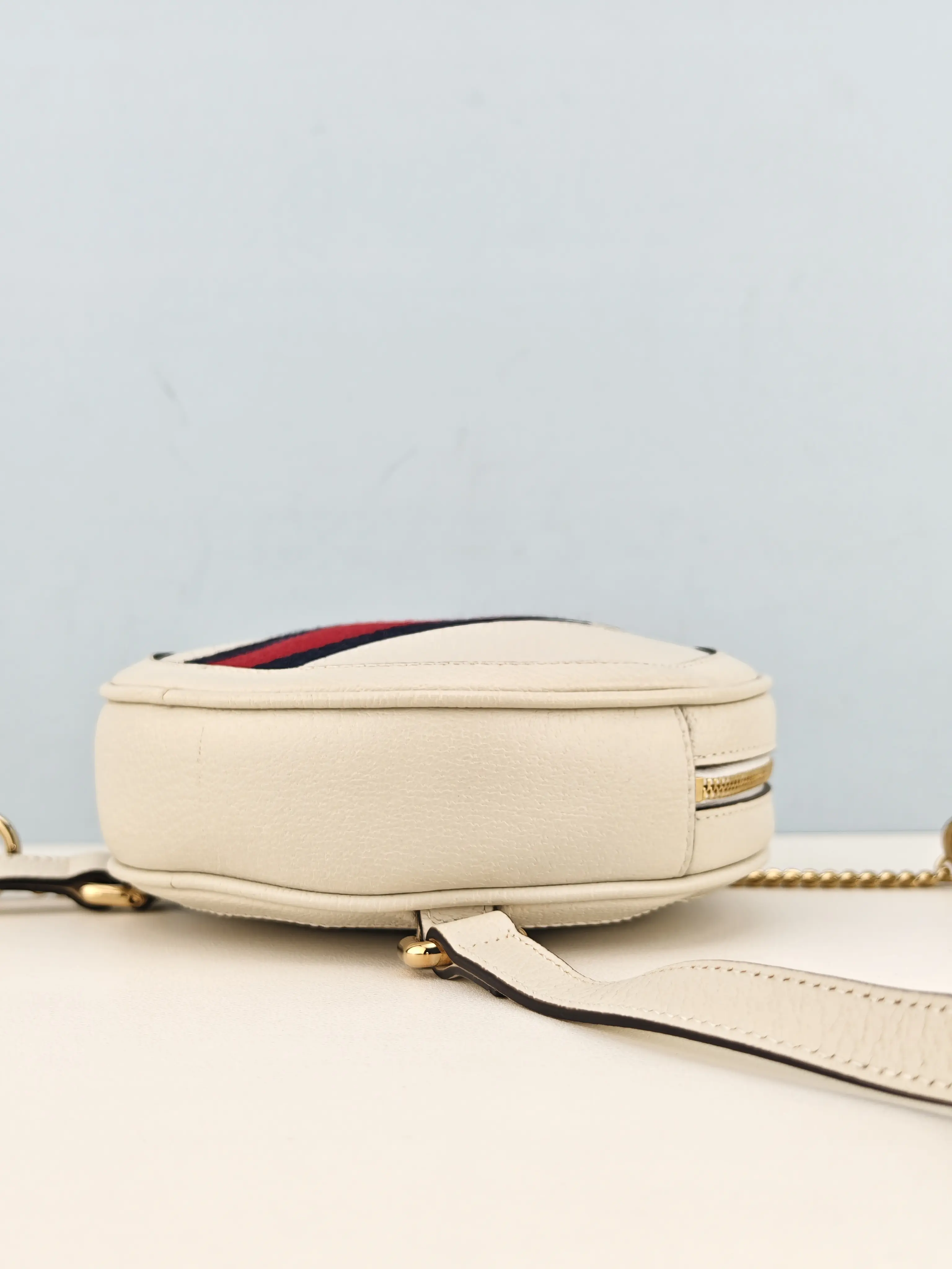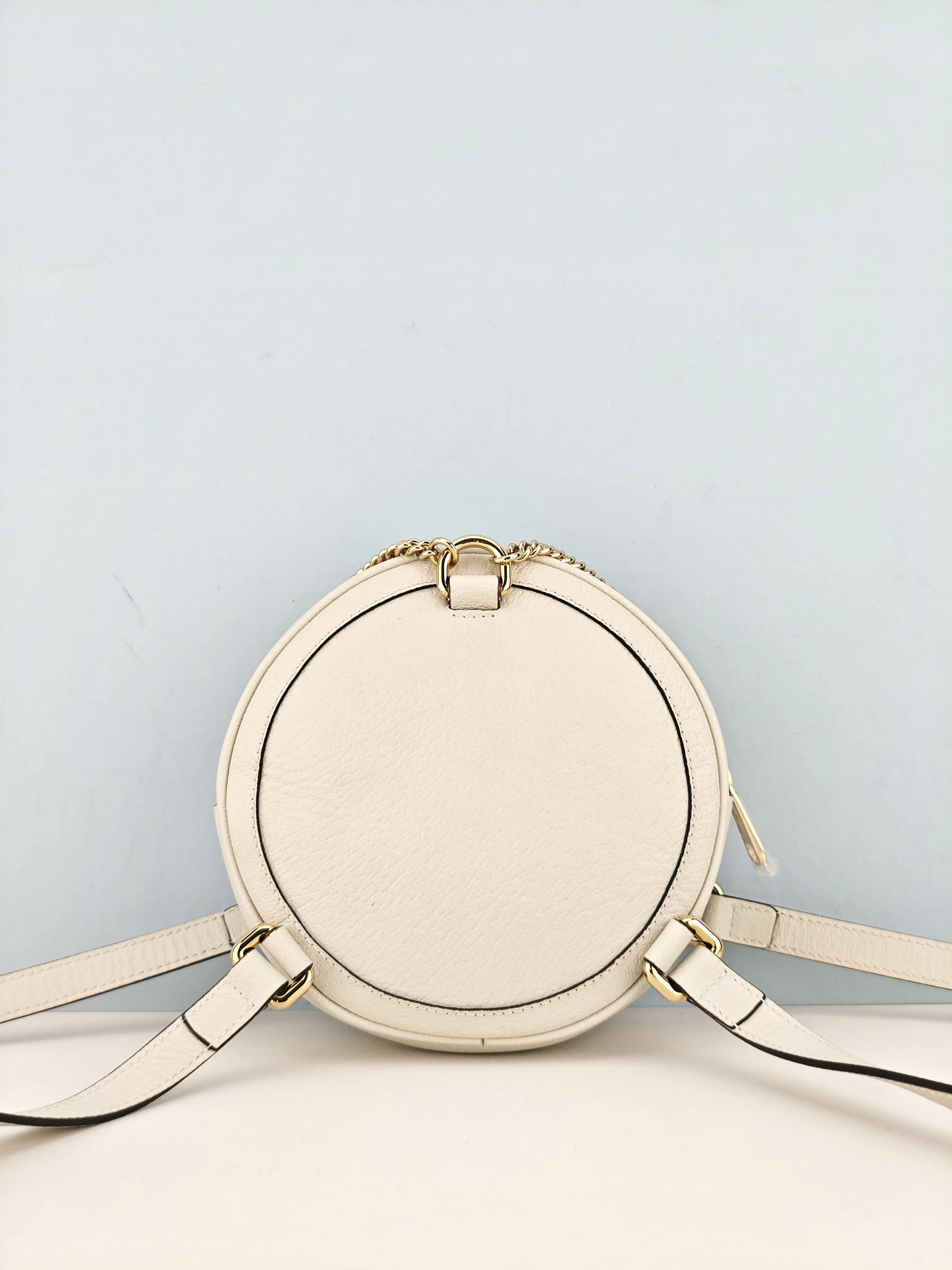 🎒 Pre-owned Authentic Gucci White Leather Ophidia Vintage Web Circle Backpack Bag