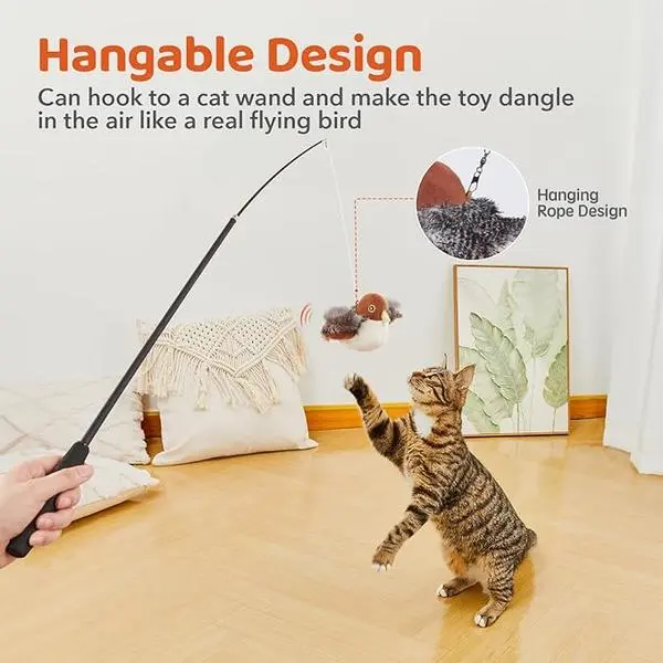 ·Automatic Motion Sensor: When your cat touches the toy, the built-in sensor activates, making the toy flap and flutter like a real sparrow. This intriguing action keeps your cat engaged and entertained.