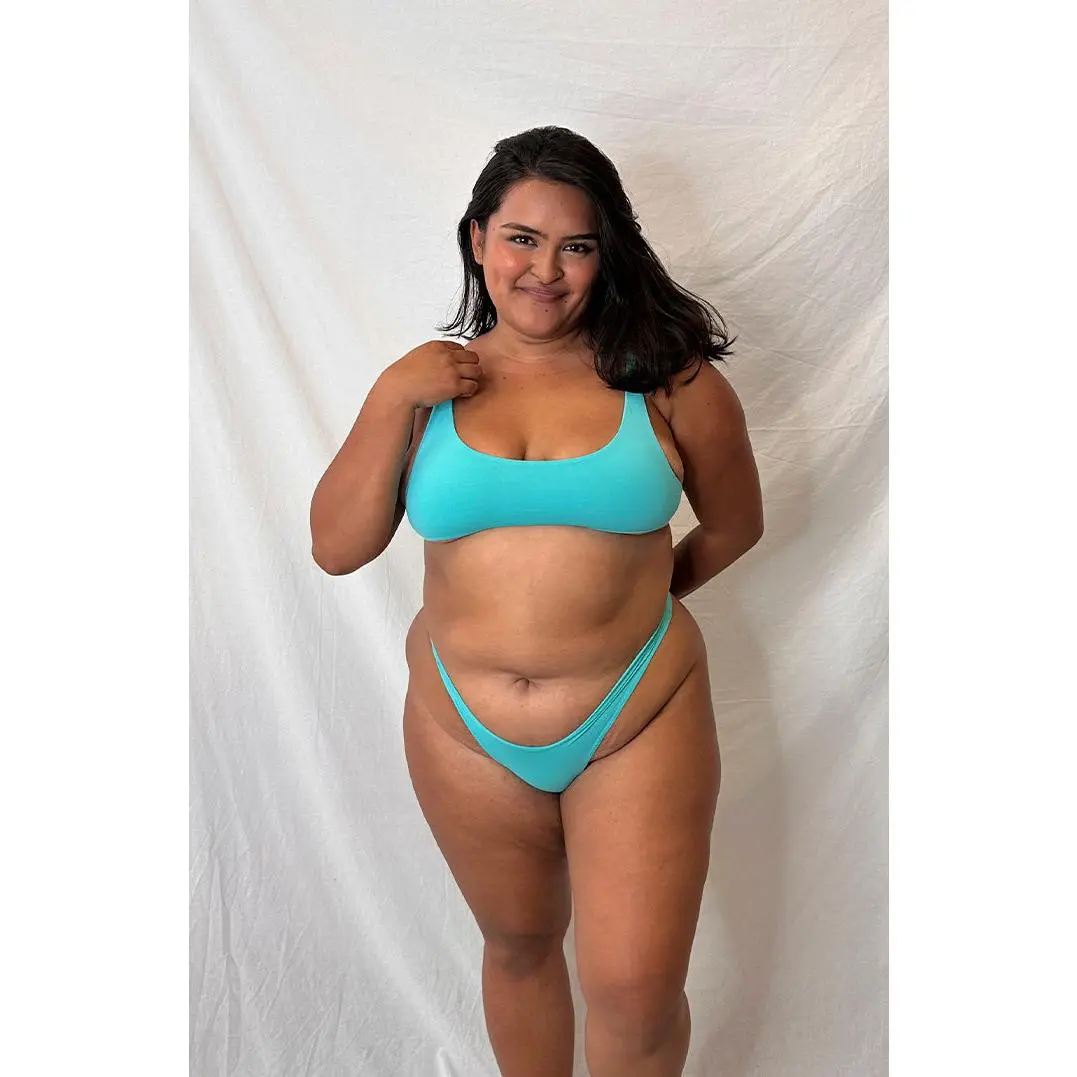 Sizzling in our Scoop Neck Bikini Top! The plunging neckline with thick yet delicate shoulder straps for extra support. With its moderate coverage, this sporty favorite is a versatile choice that effortlessly pairs with a wide range of collection bottoms. Turn heads wherever you go.