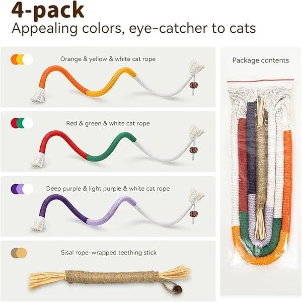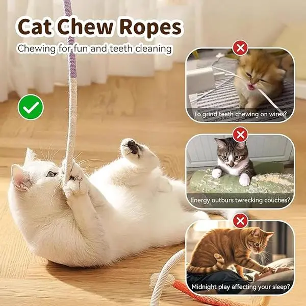 ·Soft Colorful Ropes: Provide enriching quiet playtime without bothering owners.