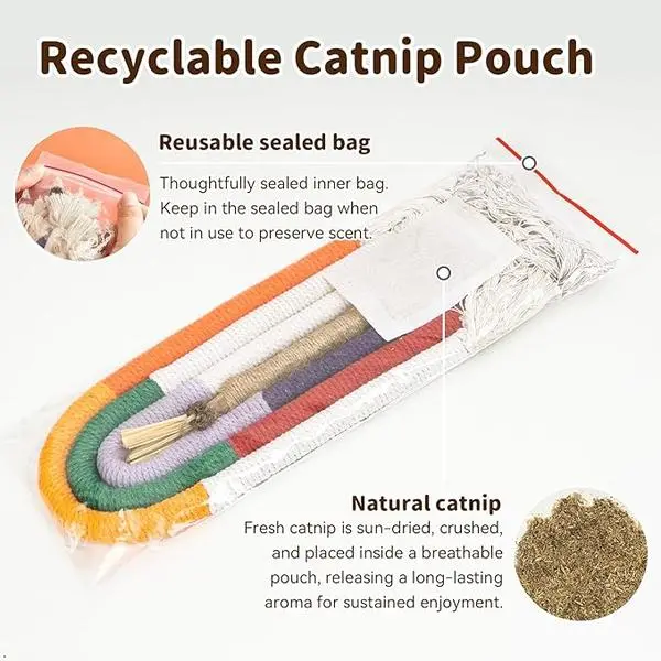 ·Refillable Pouch: Filled with 100% organic catnip and silvervine blend.