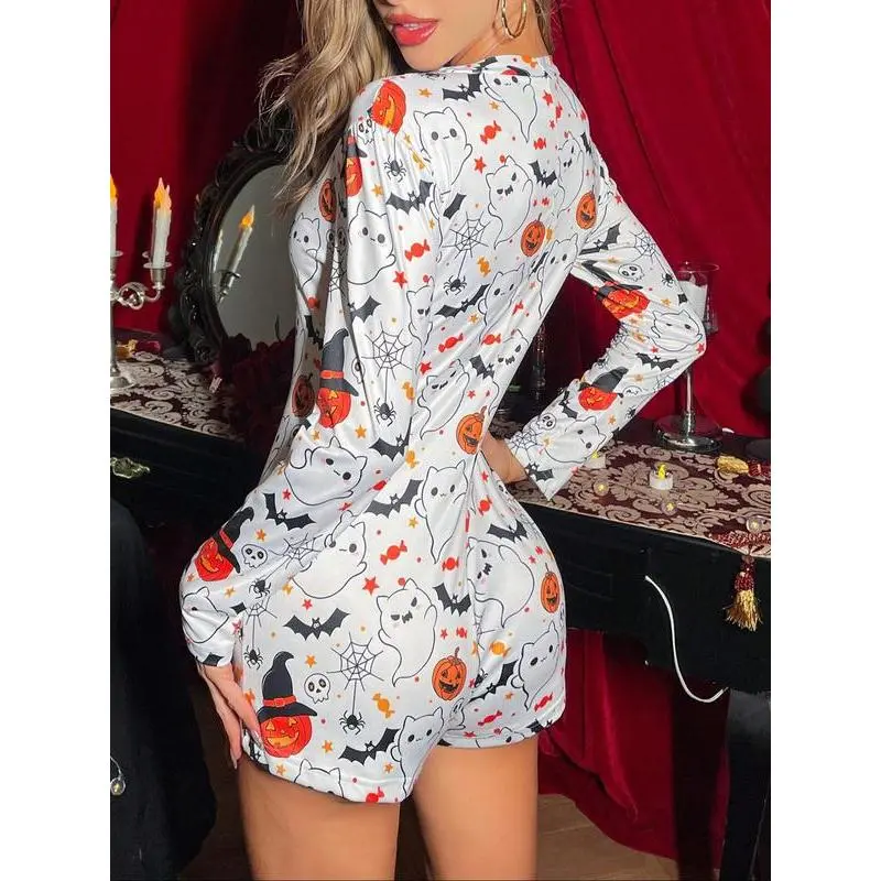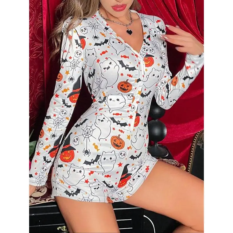 【All-season wear】: Crafted for comfort throughout the year, this sleepwear can be worn during any season without discomfort. 【Unique style】: Features a slim-fitting silhouette that accentuates the figure, setting it apart from traditional loose nightwear. 【Lightweight fabric】: Made from thin fabric that ensures breathability, making it suitable for warm weather and indoor use. 【Versatile use】: This one-piece can transition from festive Halloween parties into daily wear, offering multi-purpose functionality. 【Simple care】: Fabric does not require extensive maintenance, allowing for easy cleaning and long-lasting wear through repeated use.