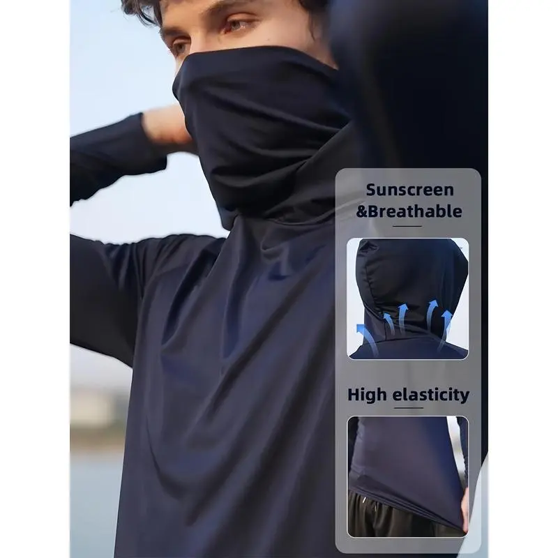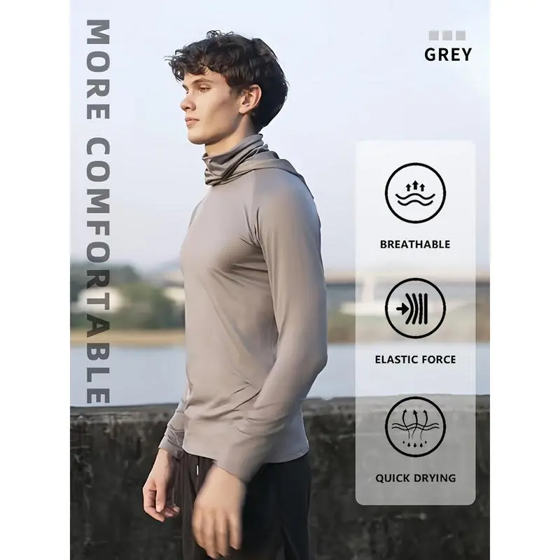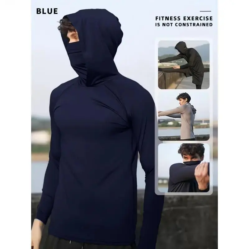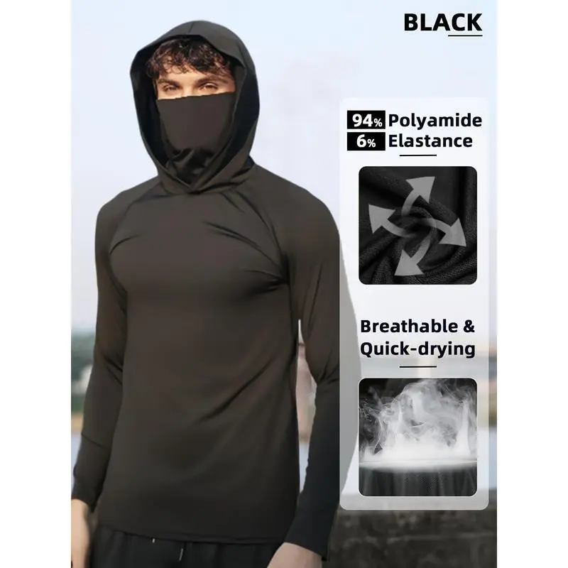 3-Pack Men Sun-Proof Hoodie with Mask-Lightweight High Elaic Compression Sportswear for Running and Fitness
