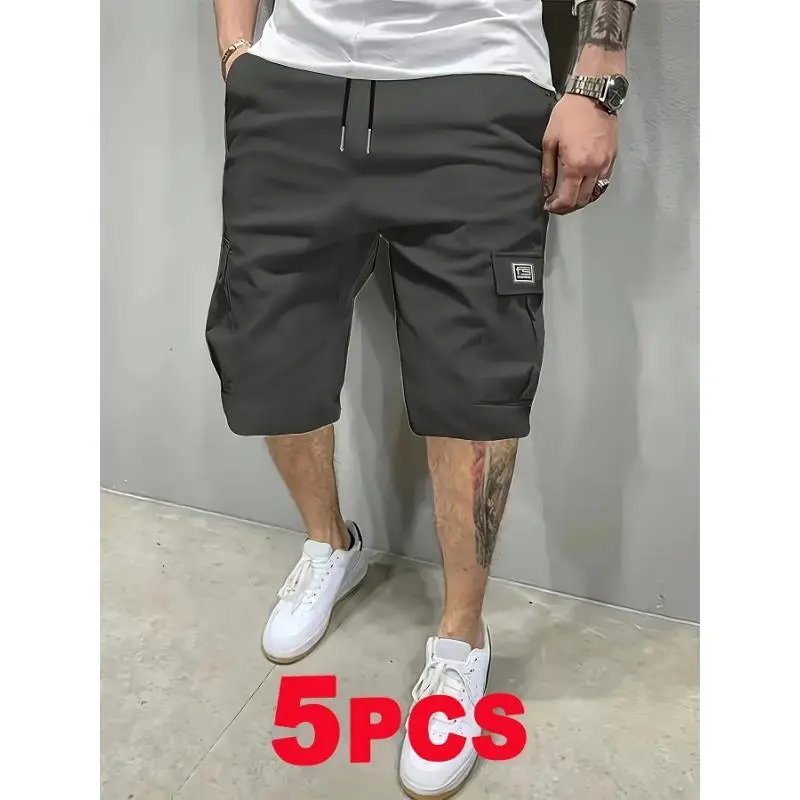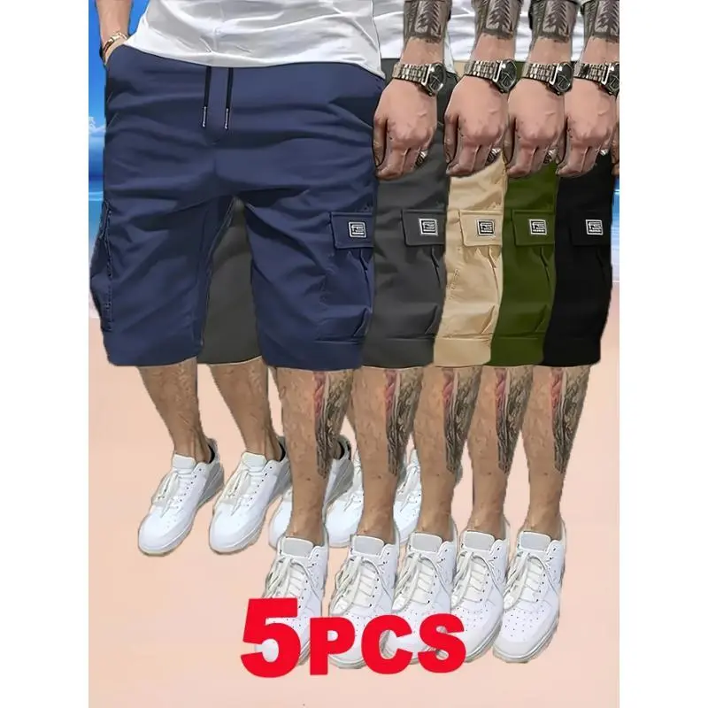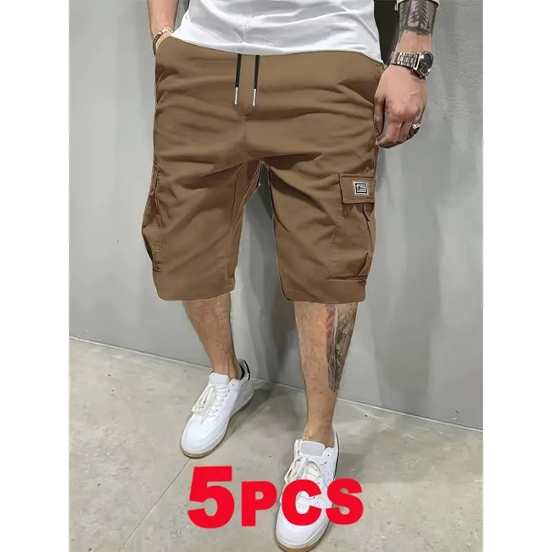 5pcsMen'sCargoShorts-Multi-PocketDurableFabric,No-BounceBreathableDesign,SolidColorCasualWorkwearStyleforSummer&CasualAttireBeigeMenswear