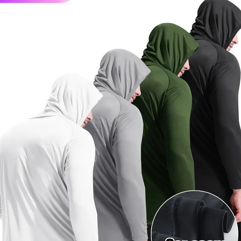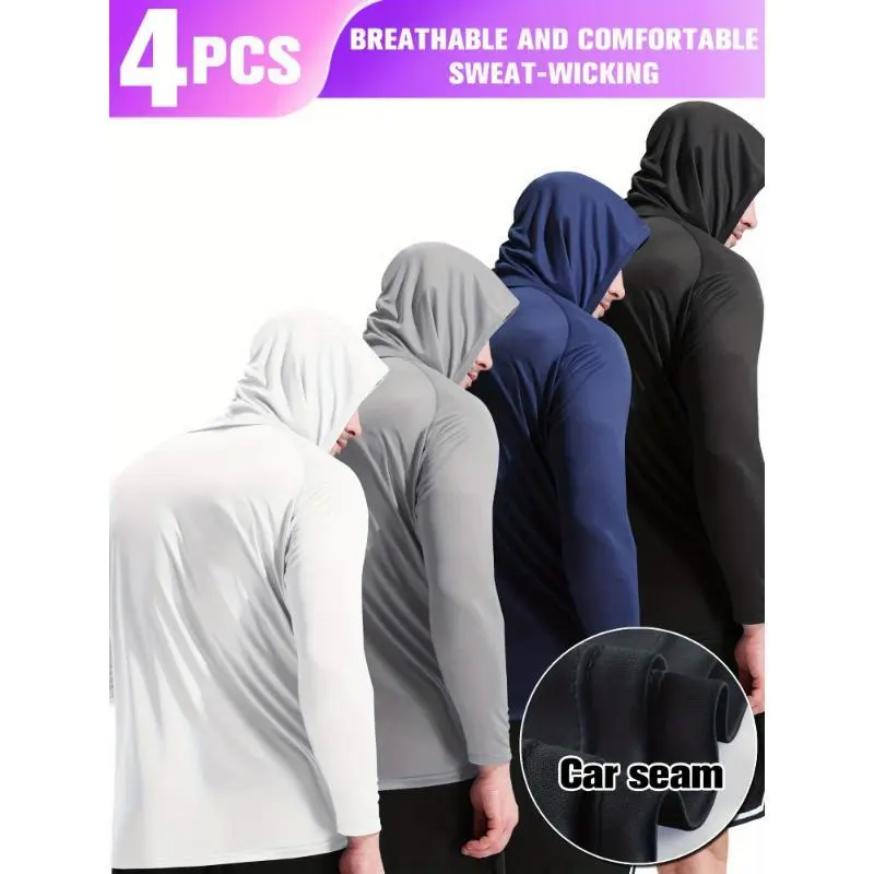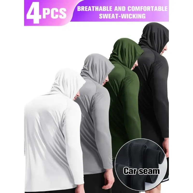 4-pack4-PackMen'sLongSleeveSunProtectionwithHood,-DryBreathableHoodedWorkoutShirtsFishing,Running,Gym