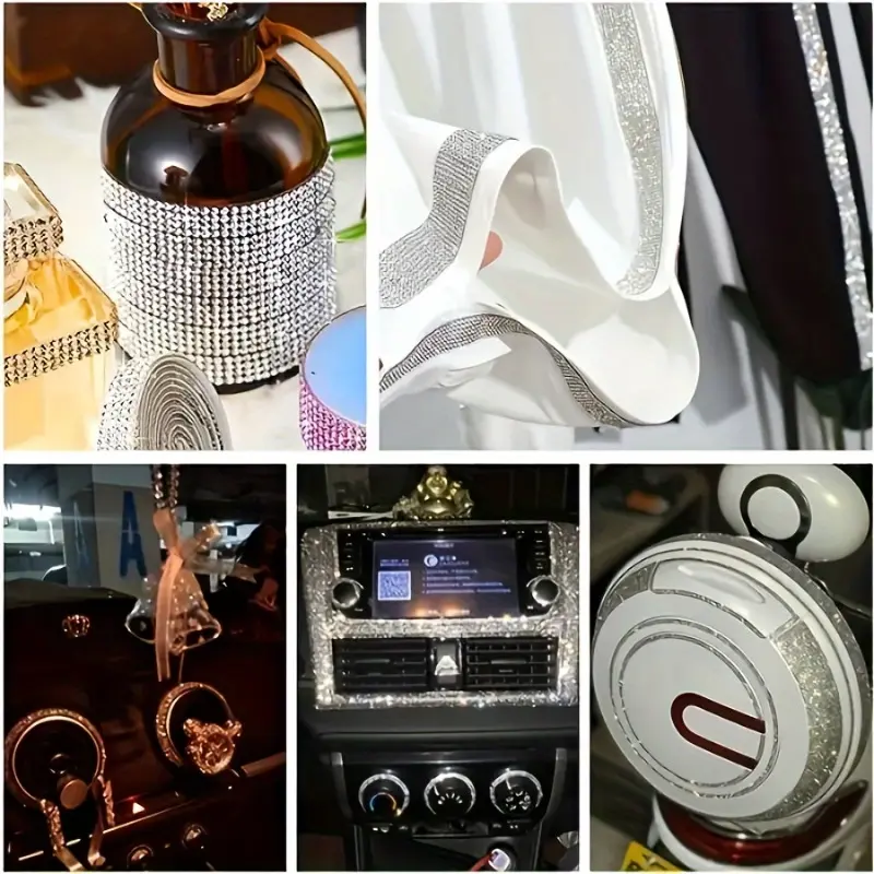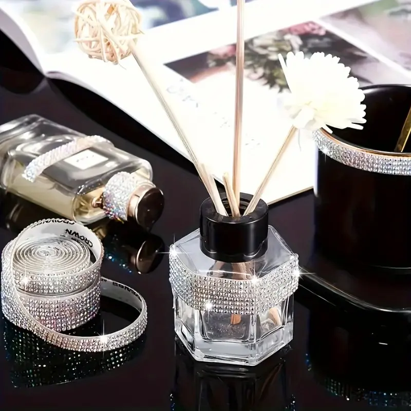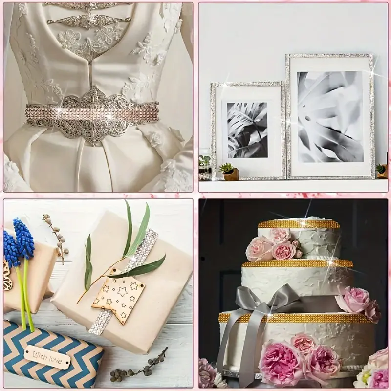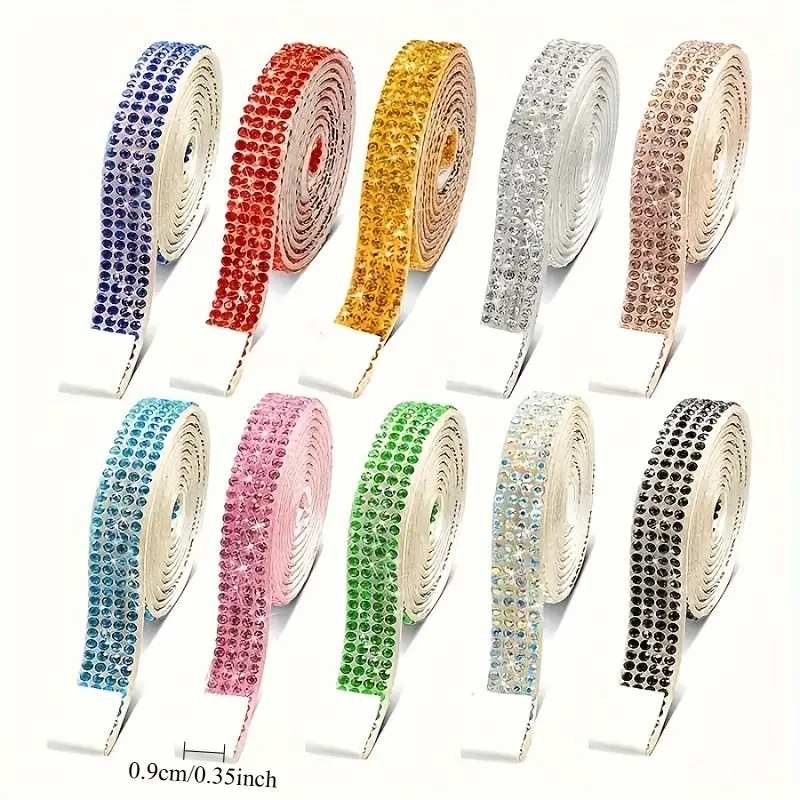 0.9cm Wide 91cm Long Crystal Self-adhesive Strip, Rhinestone Strip Decorative Strip, Clothing Sewing Accessories, Clothing Color DlY Ribbon Sticker, Rhinestone Tape Roll, Used For DIY Crafts, Wedding Party Decoration, Car Phone Clothing Bag Decoration