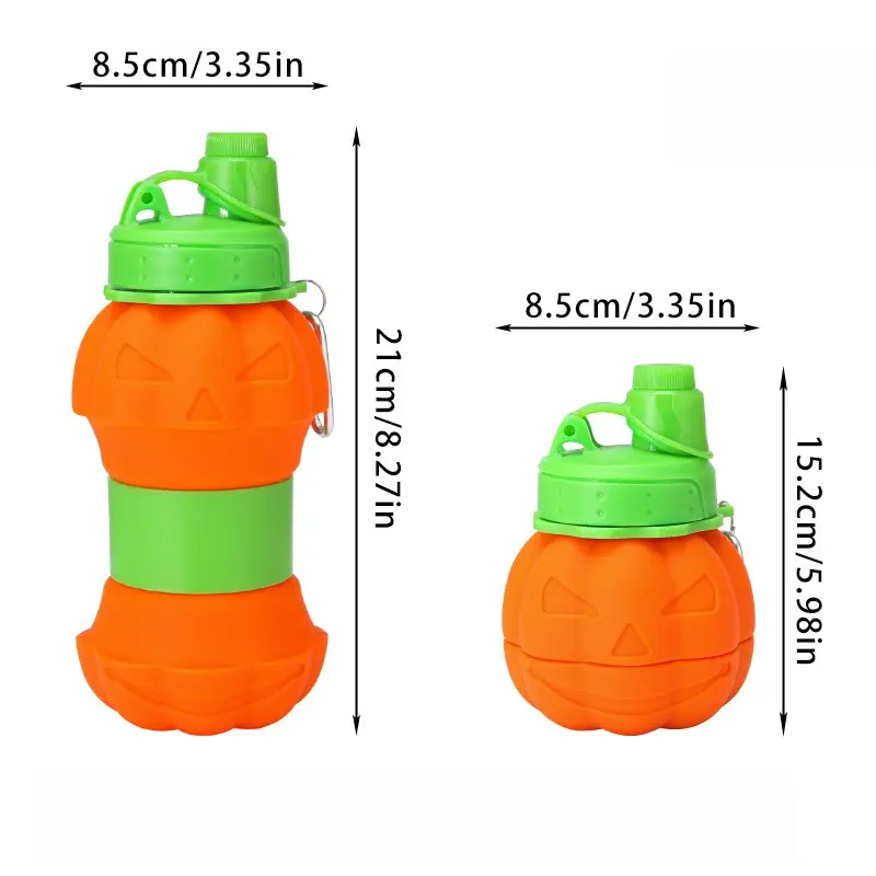 Outdoor sports water bottle, silicone folding cup, Halloween-inspired pumpkin design, telescopic and portable silicone water cup, collapsible water bottle, travel water bottle, sports portable sports water bottle, reusable water bottle, equipped with clim