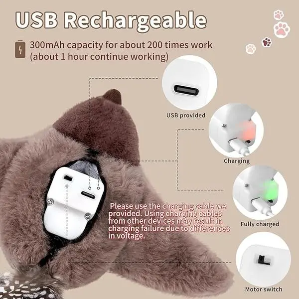 ·Charging Cable: Use the provided charging cable for the flying bird cat toys.