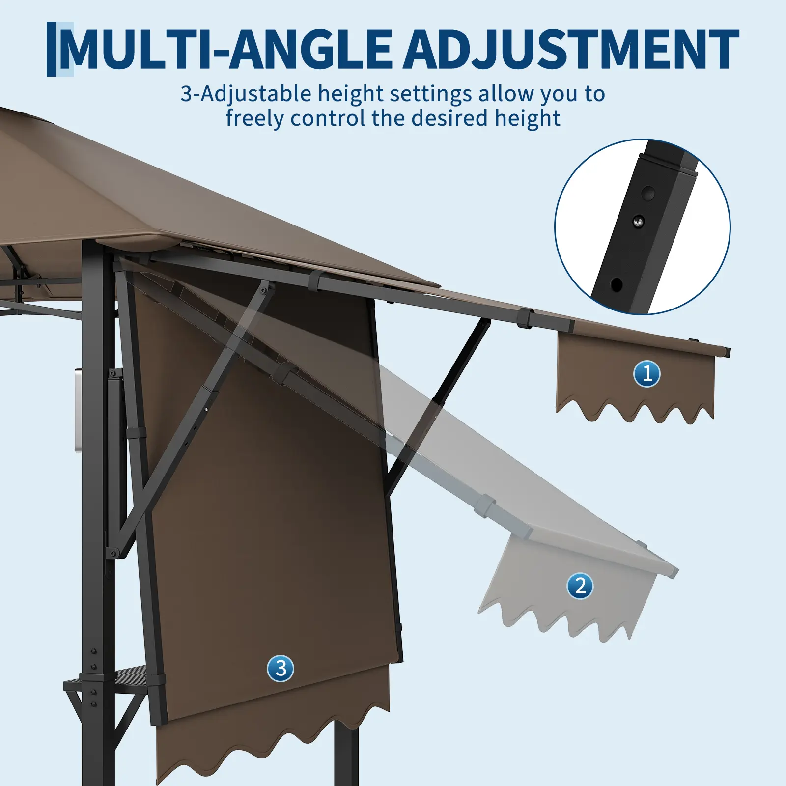 ·Custom Shade with Adjustable Dual Awnings: Enjoy grilling in comfort with dual side awnings that open and close at three different angles, letting you block sun, wind, or drizzle for the perfect outdoor BBQ experience in any weather