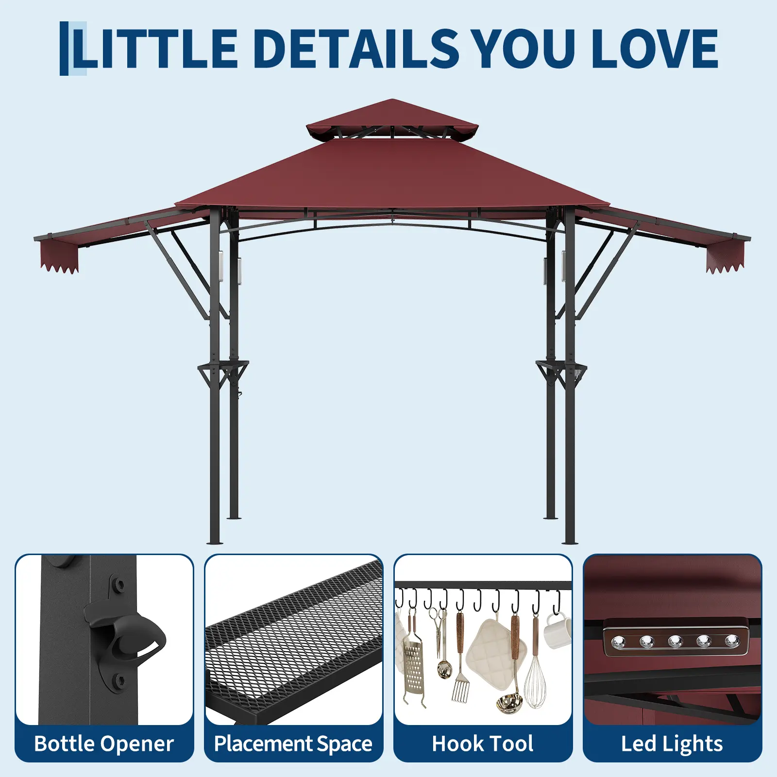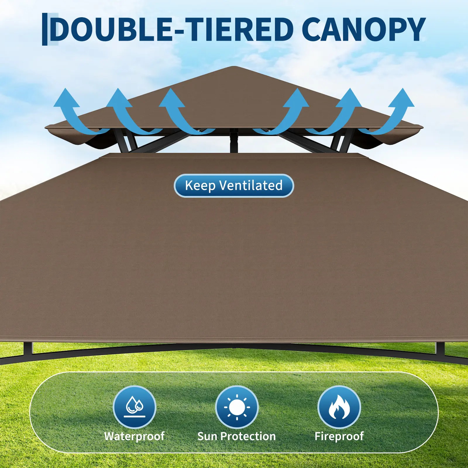 ·Superior Ventilation with 2-Tier Canopy: The innovative two-tier BBQ gazebo design lets smoke escape and encourages airflow, so you can grill without getting smoke in your eyes while still protecting you and your guests from harsh sunlight