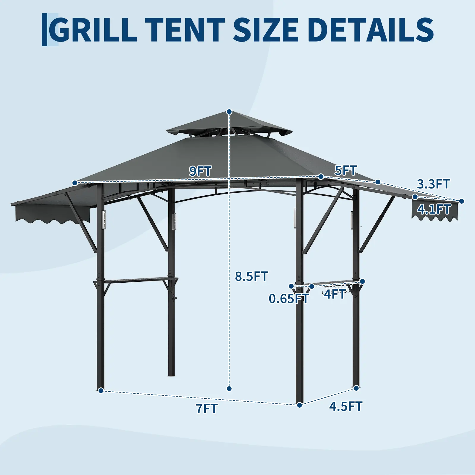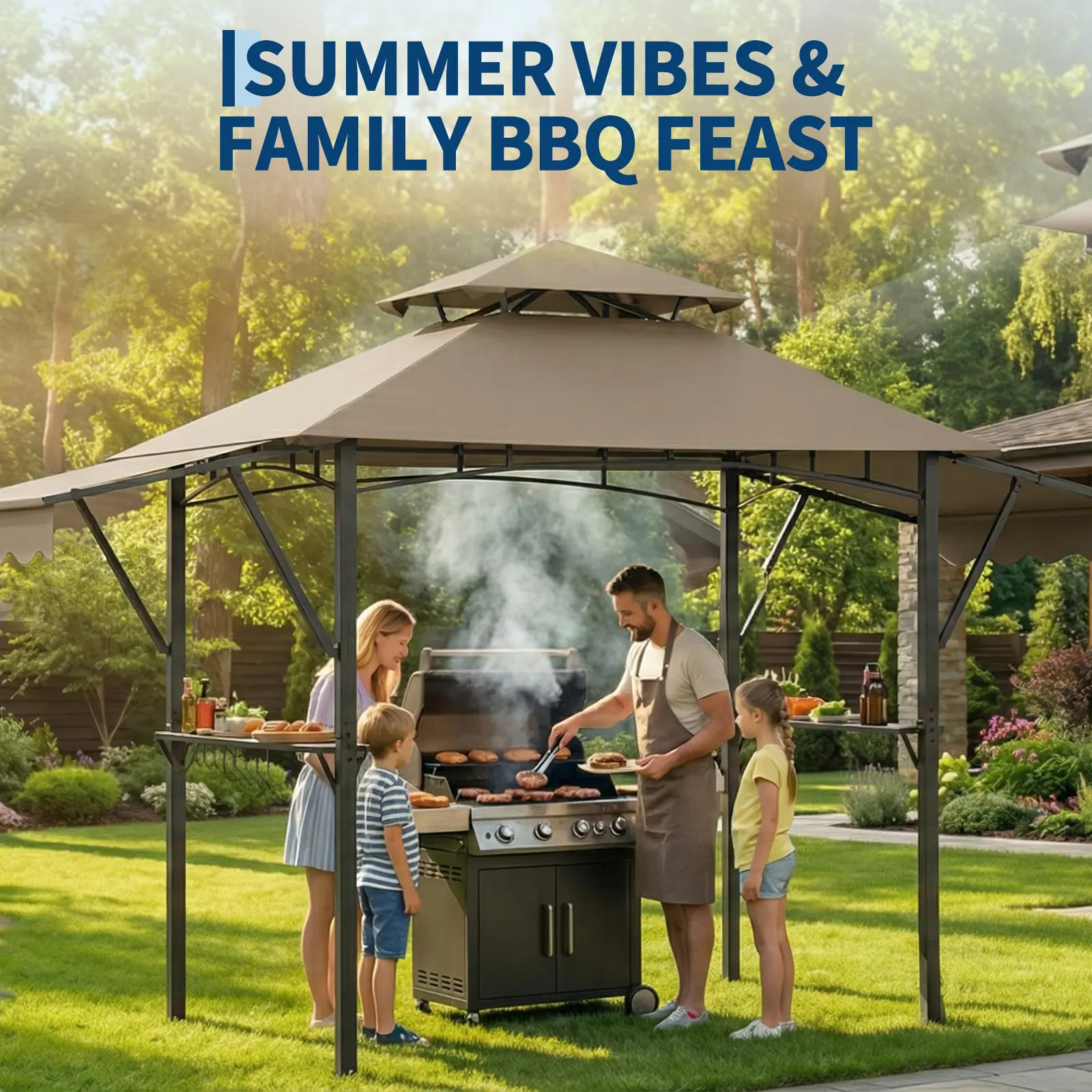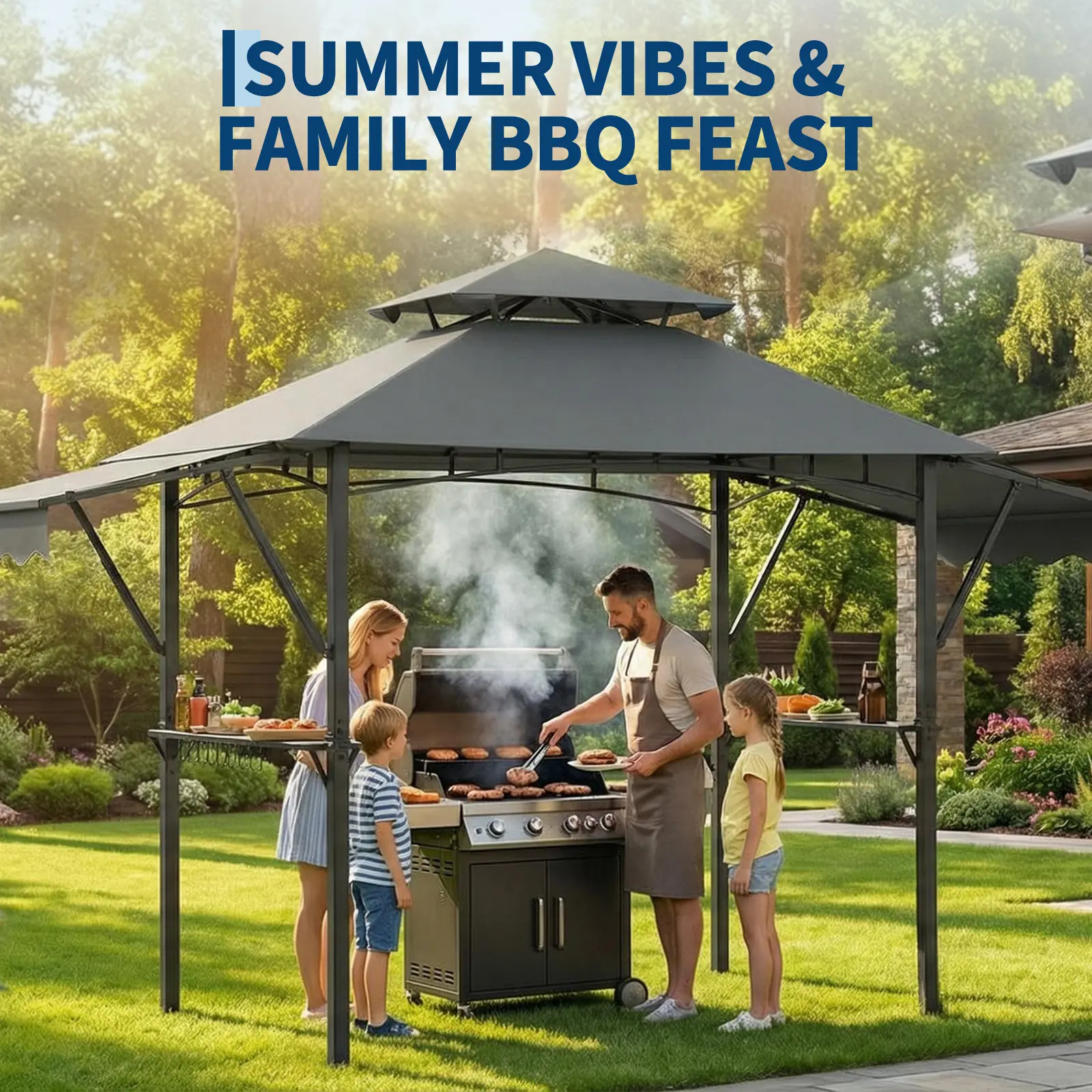 ·Safe, Sturdy & Weather-Resistant Build: Crafted with fire-resistant, sun-protective polyester and a heavy-duty powder-coated steel frame, this grill shelter stands strong against wind, rust, and corrosion—delivering years of reliable backyard fun