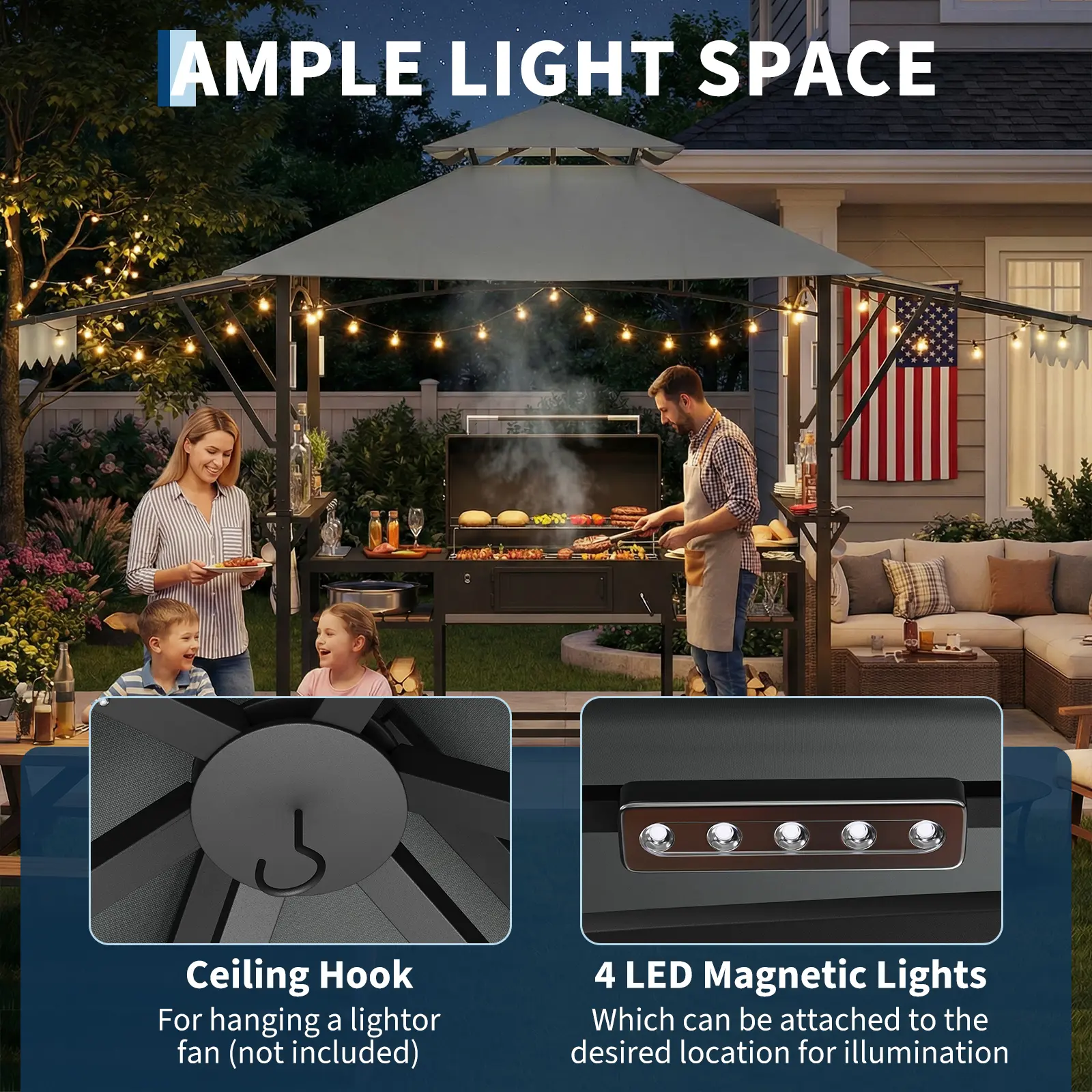 ·Light Up Your BBQ Nights with Ceiling Hook & LEDs: The integrated ceiling hook is perfect for hanging extra lighting or a fan (not included), and four attachable LED magnetic lights let you grill late into the evening with bright, focused illumination