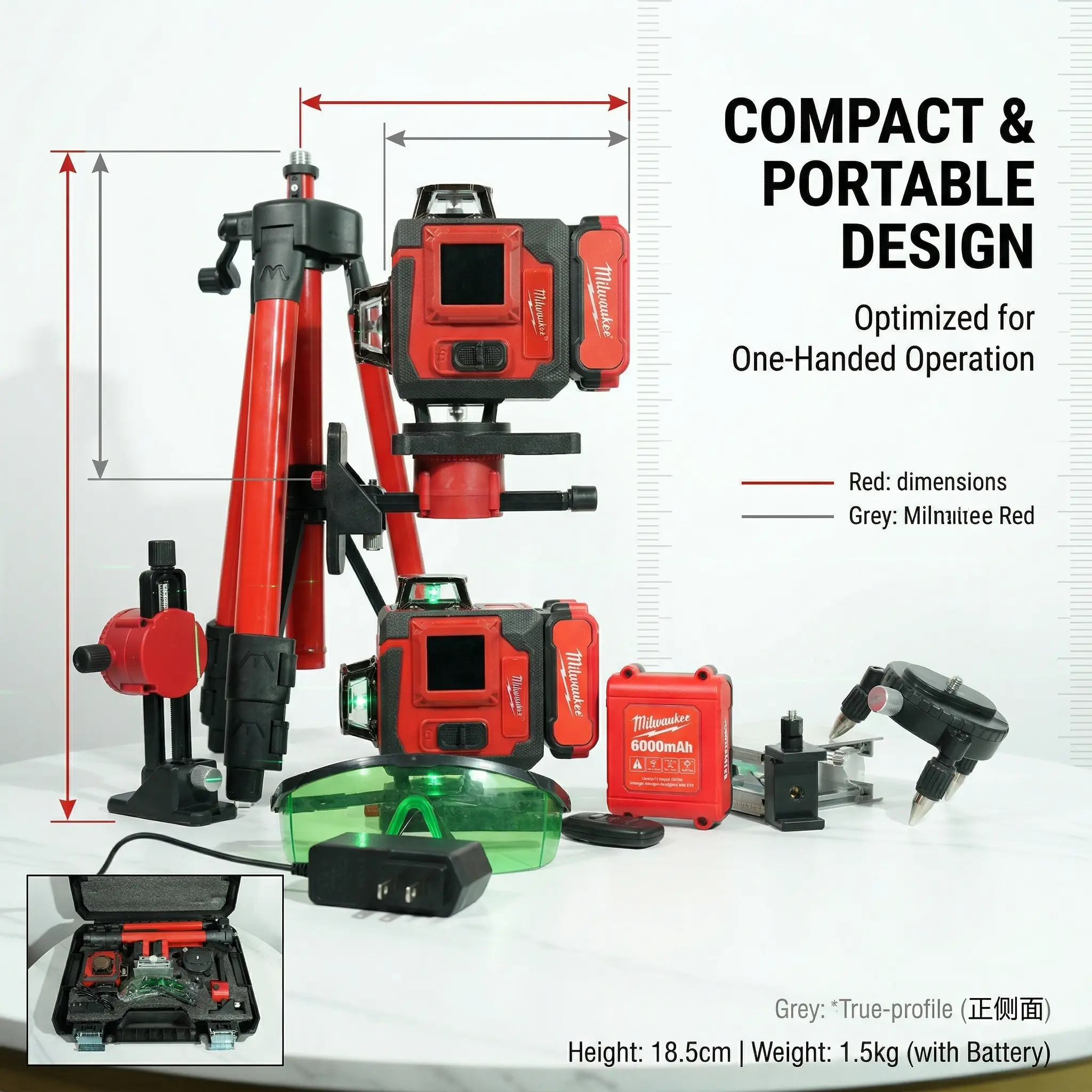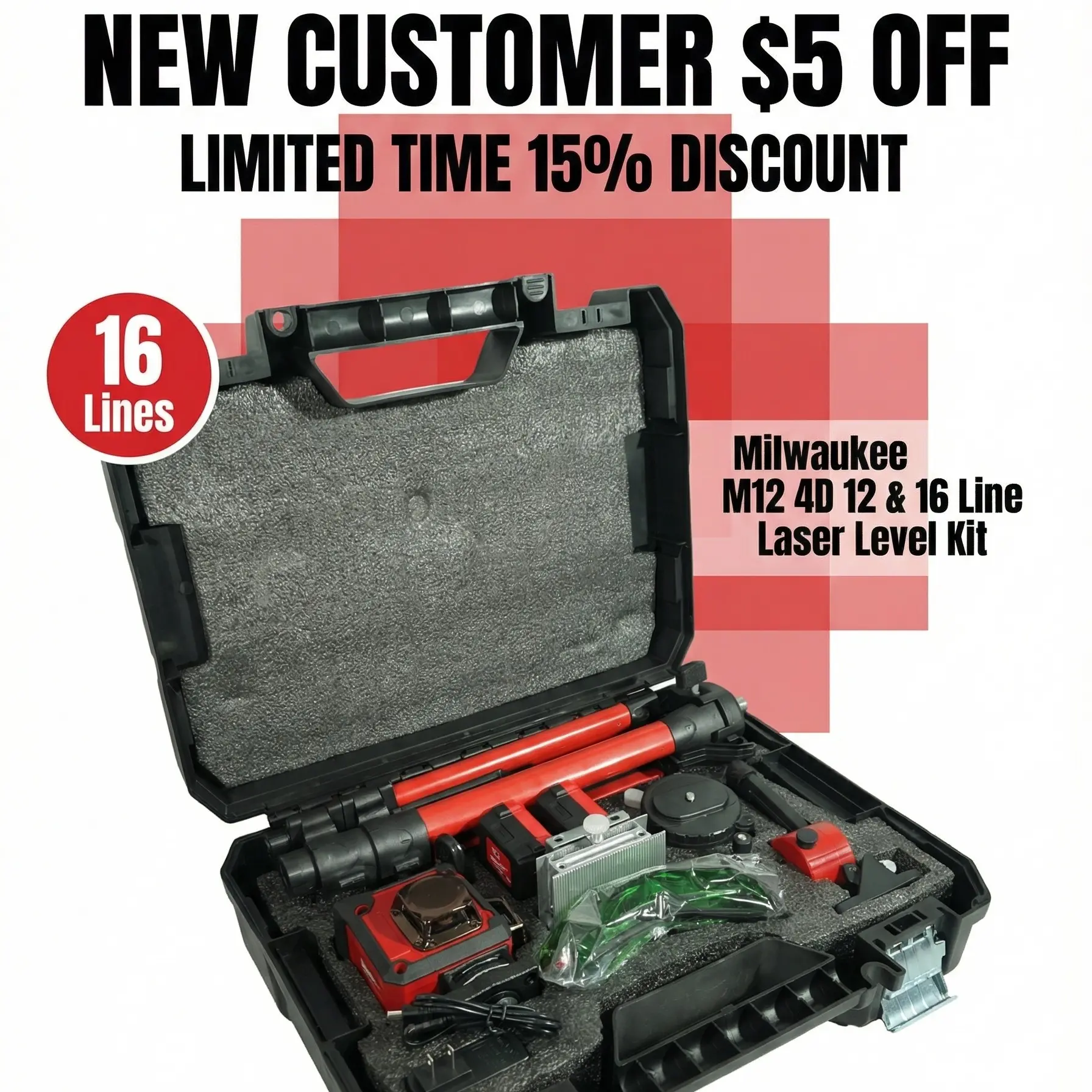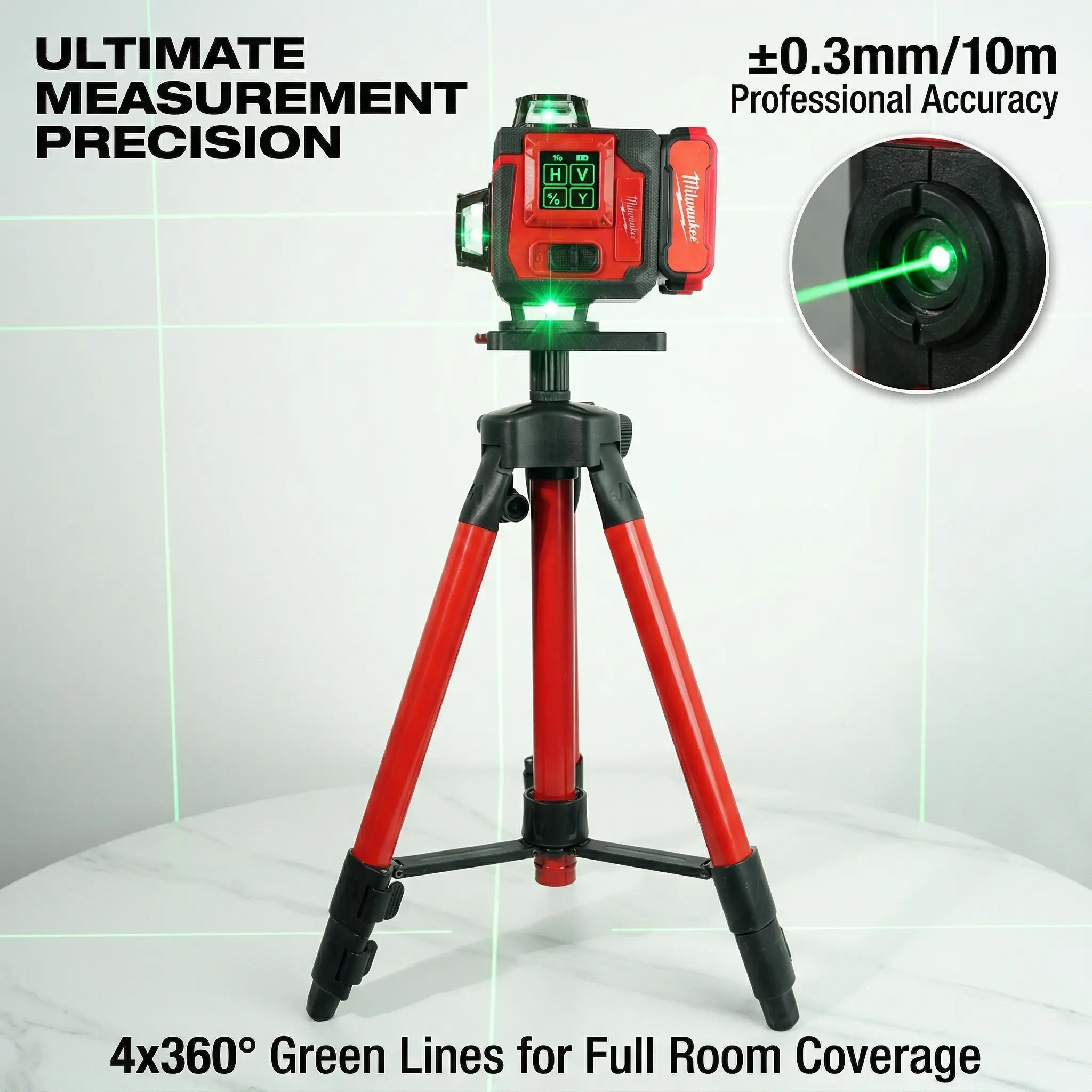 Milwaukee 16 Line Laser Level Kit For Construction Layout And Interior Installation Measuring Tool ±0.3mm Accuracy Dual Power Long Runtime Line Laser Level with Tripod