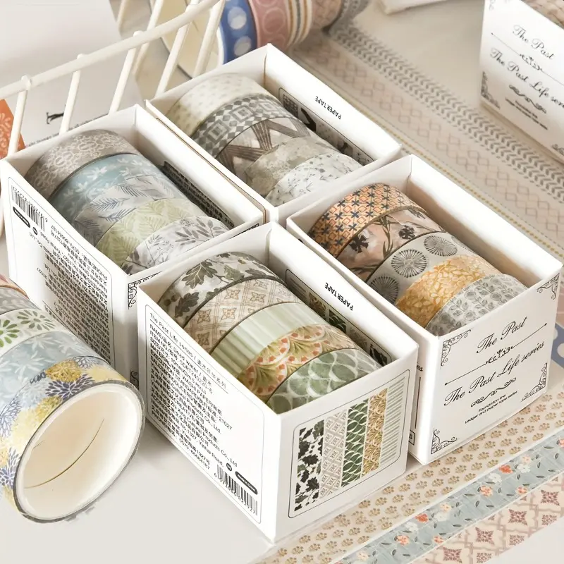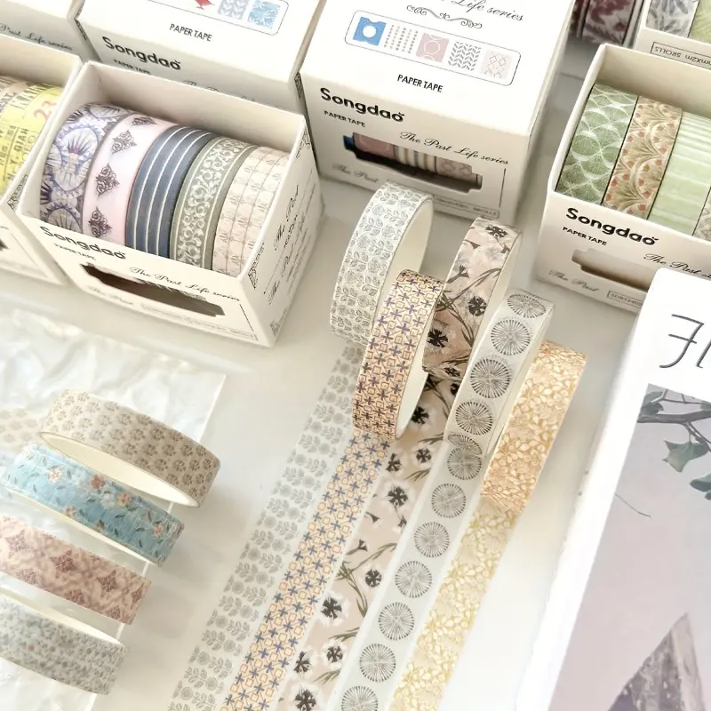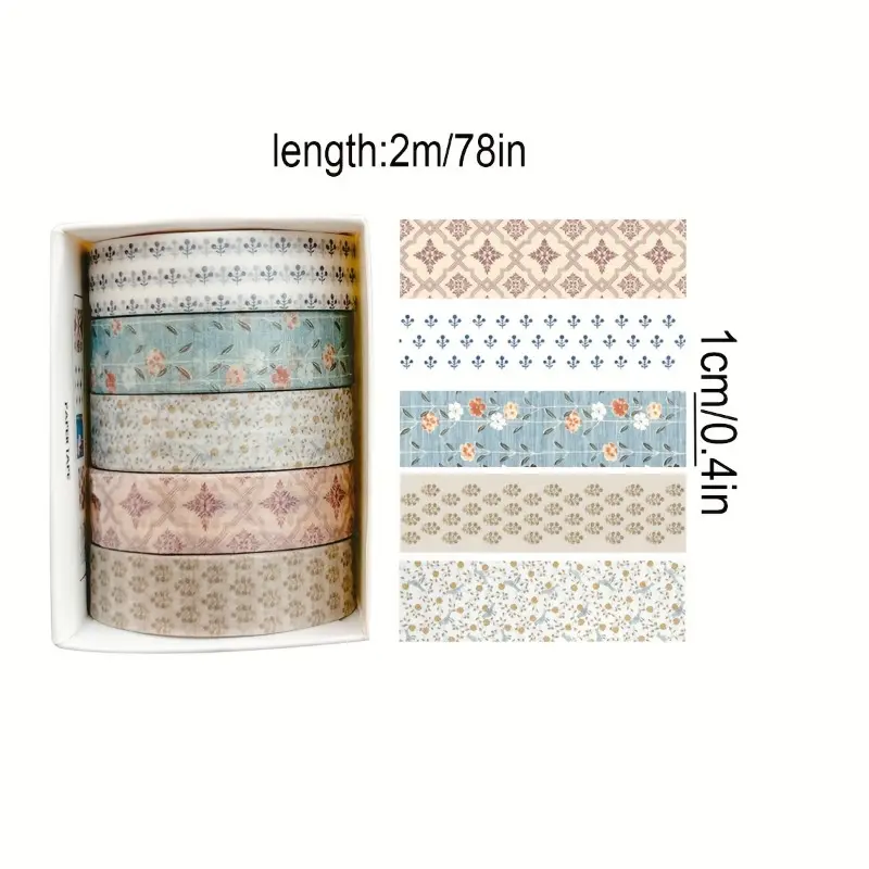 5 Rolls, Passing Water Festival Tape, Boxed Washi Tape, Ins Fresh Simple Daily Hand Account DIY Decorative Sticker Tape, Gift For Students Learning Essential Supplies