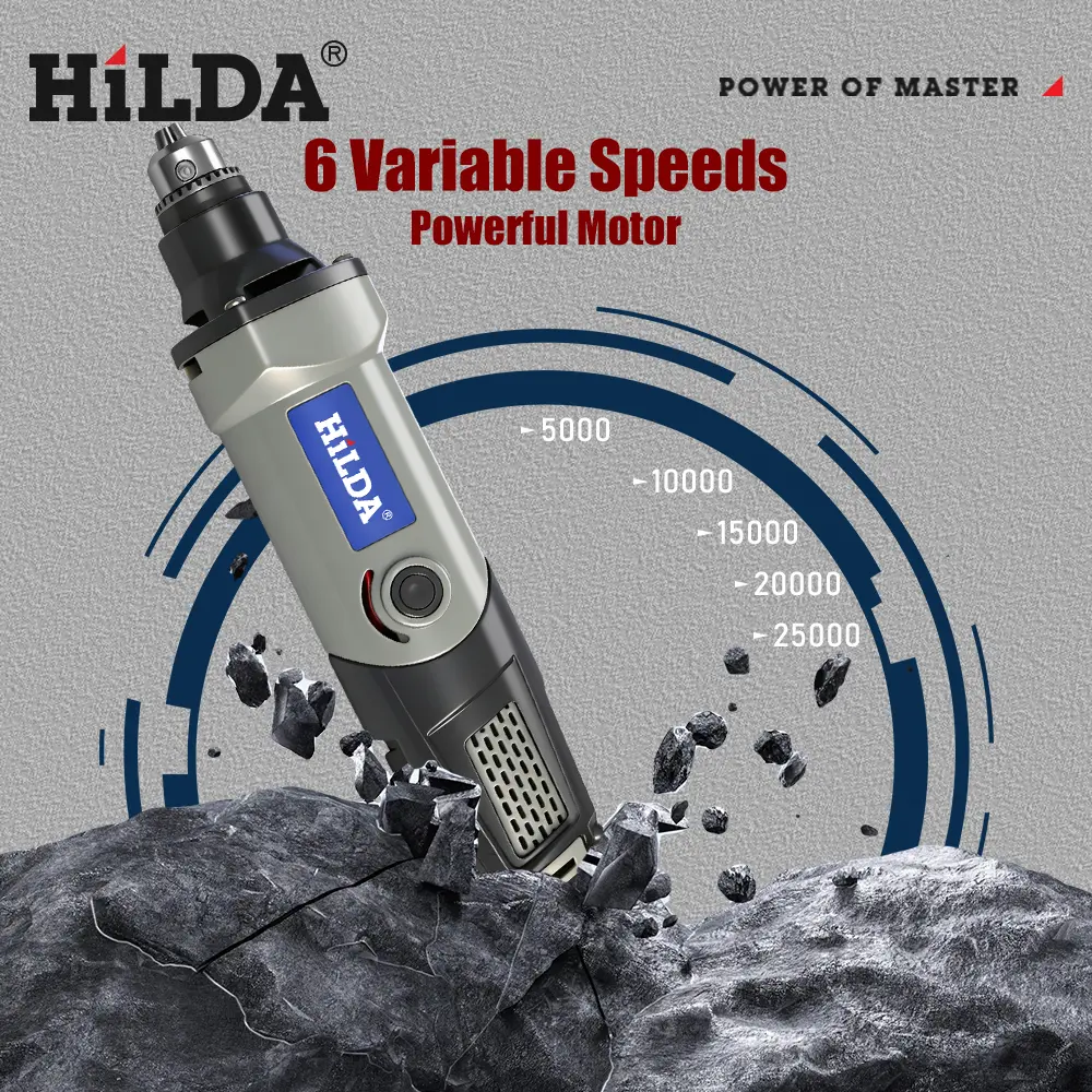 6 adjustable speed settings (5,000–28,000 RPM) paired with a powerful motor, ensuring precision and versatility for every task.