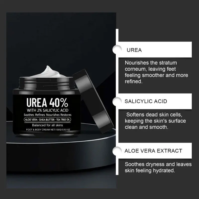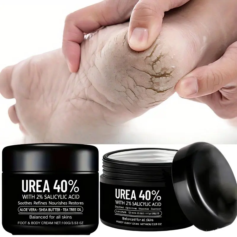 1pc 40% Urea Foot Cream for Cracked Heel - with Tea Tree Oil, Hyaluronic Acid & Shea Butter - Intense Moisturizer, Dead Skin Remover, Non-Greasy, Hypoallergenic Formula for All Skin Types