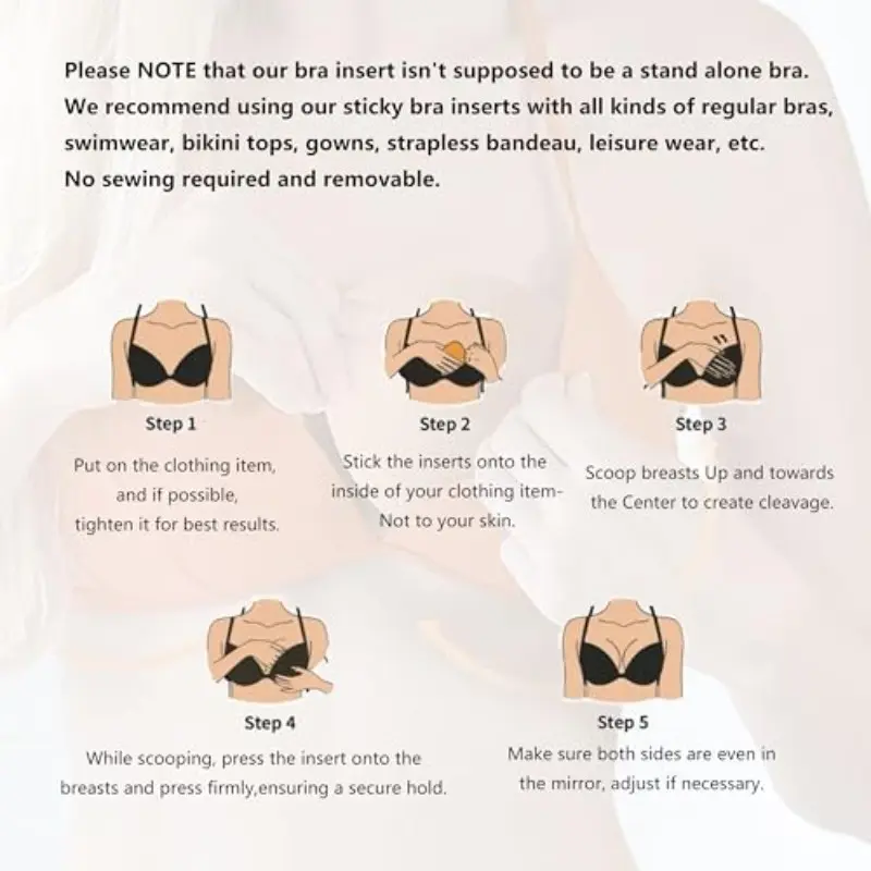 BOOMBA Invisible Lift - Patented Sticky Fashion Bra Inserts Prevents Nipple Slips No Sewing Required Low Cut Tops Womenswear