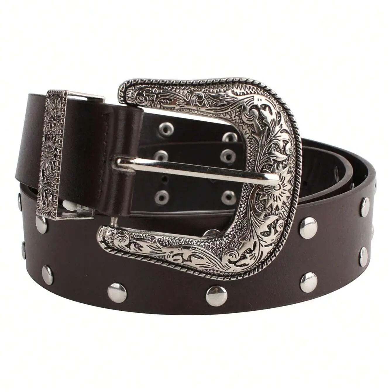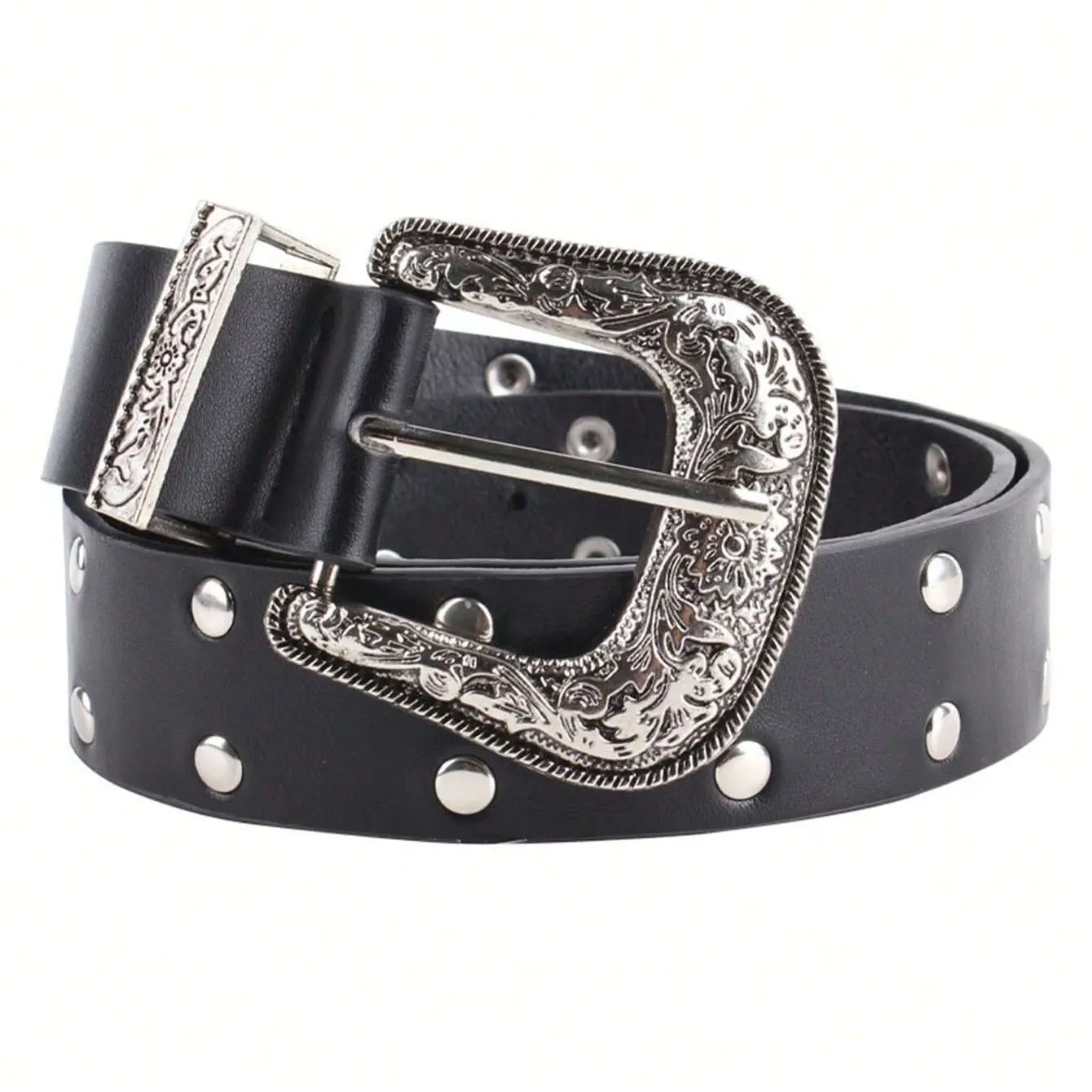 5. Y2K Vintage Versatile Belt, Carved Rivet Pin Buckle Fashion Belt, Suitable for Daily Wear, Dates, Stylish Accessory
