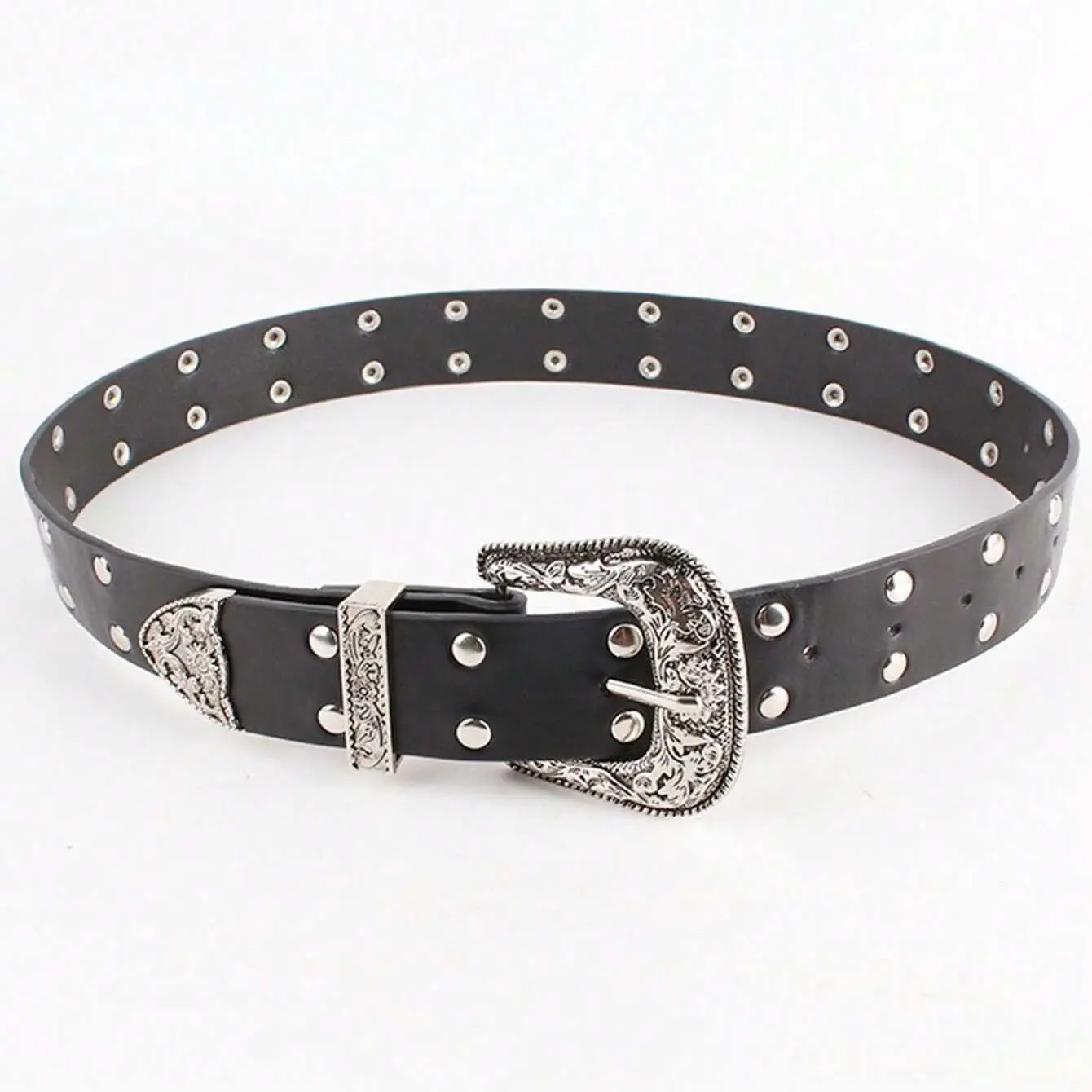 Y2K Vintage Versatile Belt, Carved Rivet Pin Buckle Fashion Belt, Suitable for Daily Wear, Dates, Stylish Accessory
