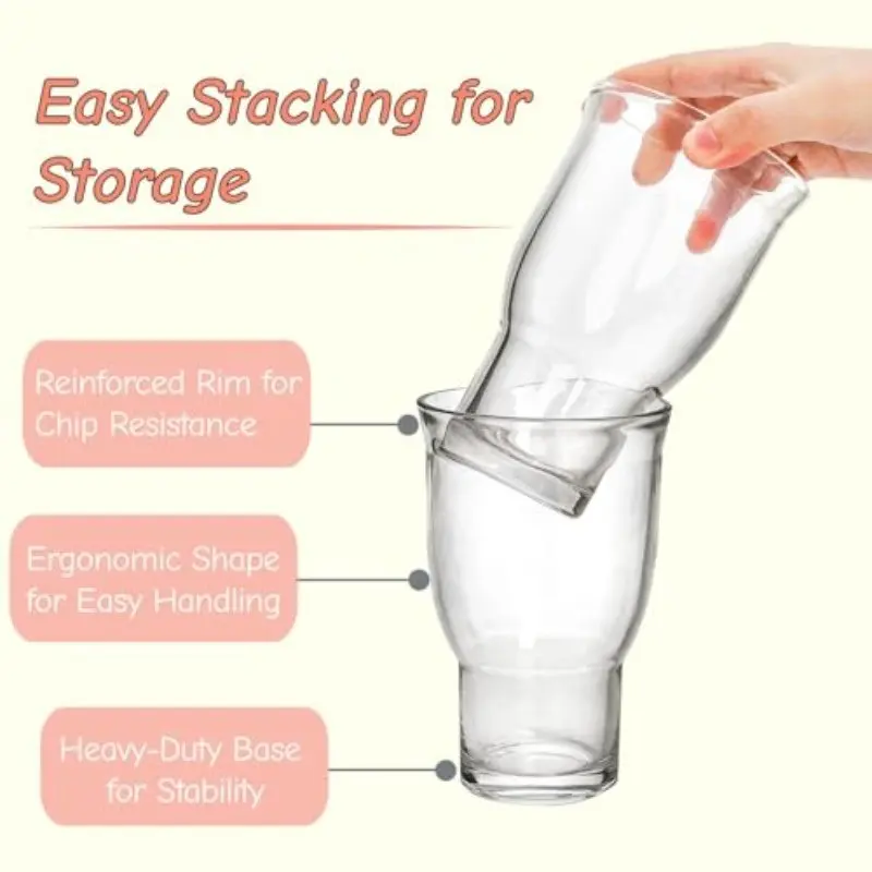 【Stackable Convenience】: These glasses are stackable, saving space in cafes and homes.