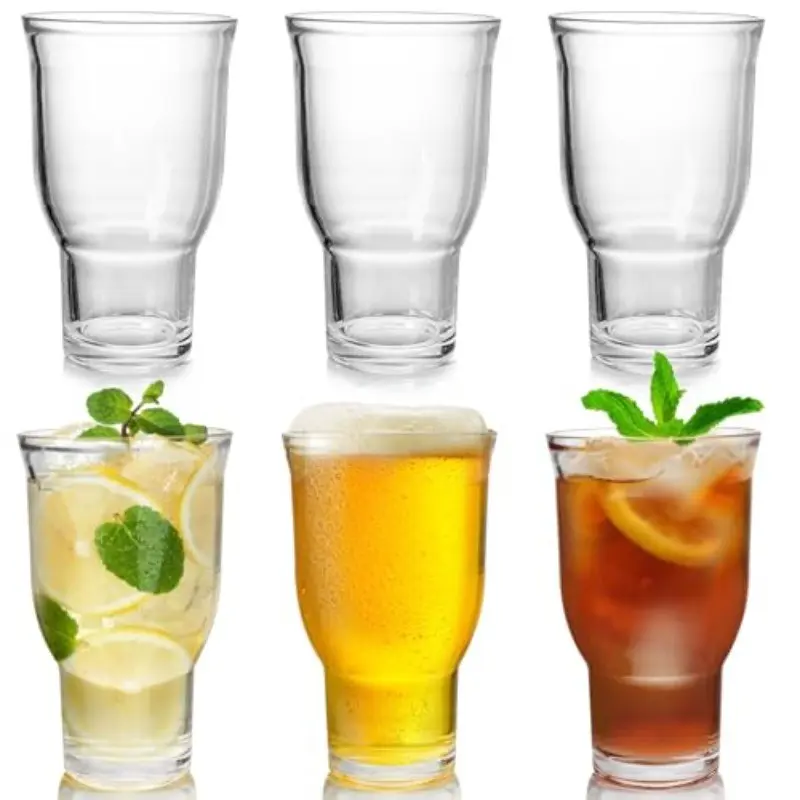 Glass Highball Cup Set of 2/4/6, Wide Mouth Heavy Base, Suitable for Soda Bubble Water/ice Coffee/wiskey/brew, Stackable Glass Cups