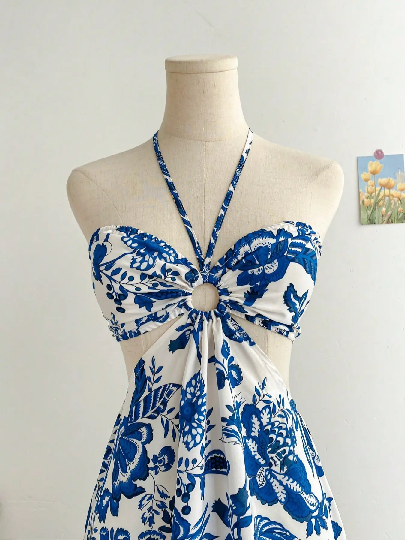 【Halter neck cut-out】: Features a halter neckline with a unique cut-out design for a distinctive look.