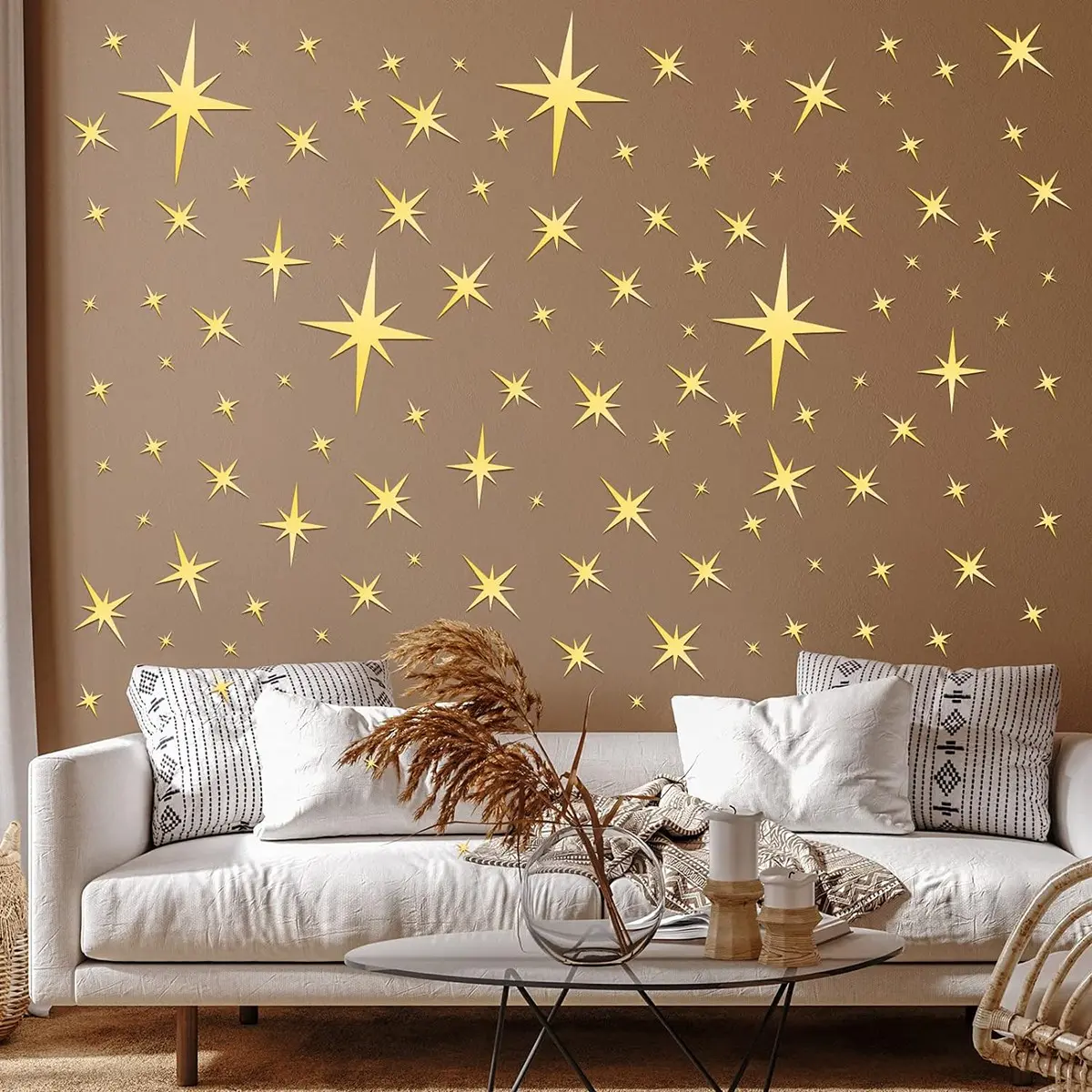 【3D Effect】: These acrylic star mirror wall stickers create a stunning 3D effect, adding depth to any room.