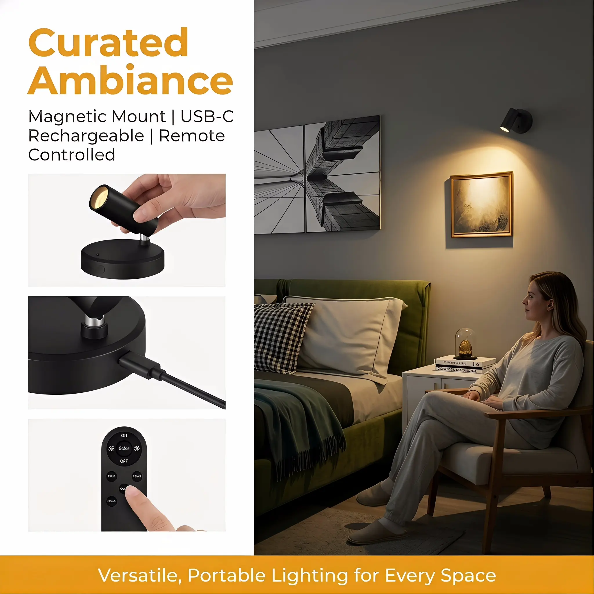Museum-Grade Lighting for Everyone Tired of messy wires or damaging your walls? Our Rechargeable Magnetic Spotlights offer the perfect solution. With a sleek design and 3000K warm glow, you can highlight your favorite artwork, plants, or cabinets in seconds.