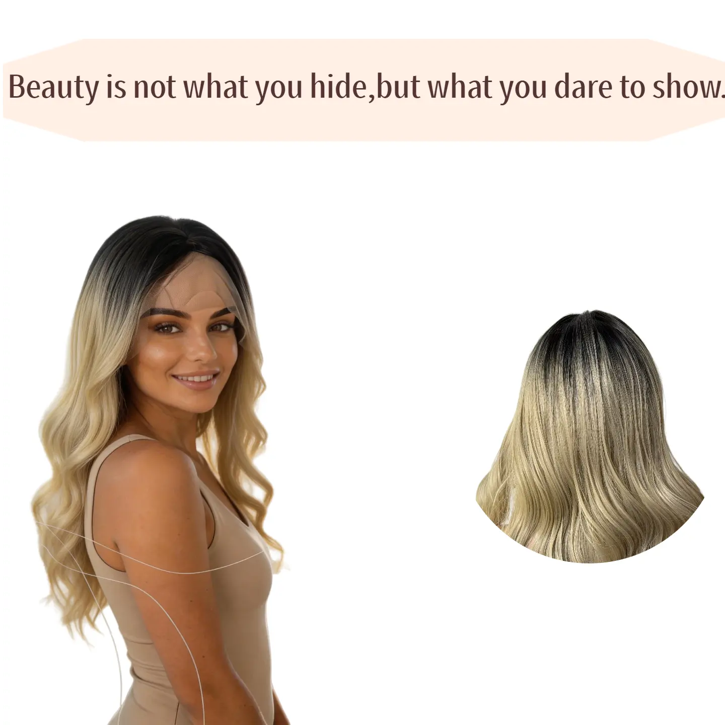 OQ Hair Highlight Balayage Color Body Wave Wig 200% Density Middle Part Wear Go T Part Lace Pre Plucked Human Hair Wigs With Smart Clips