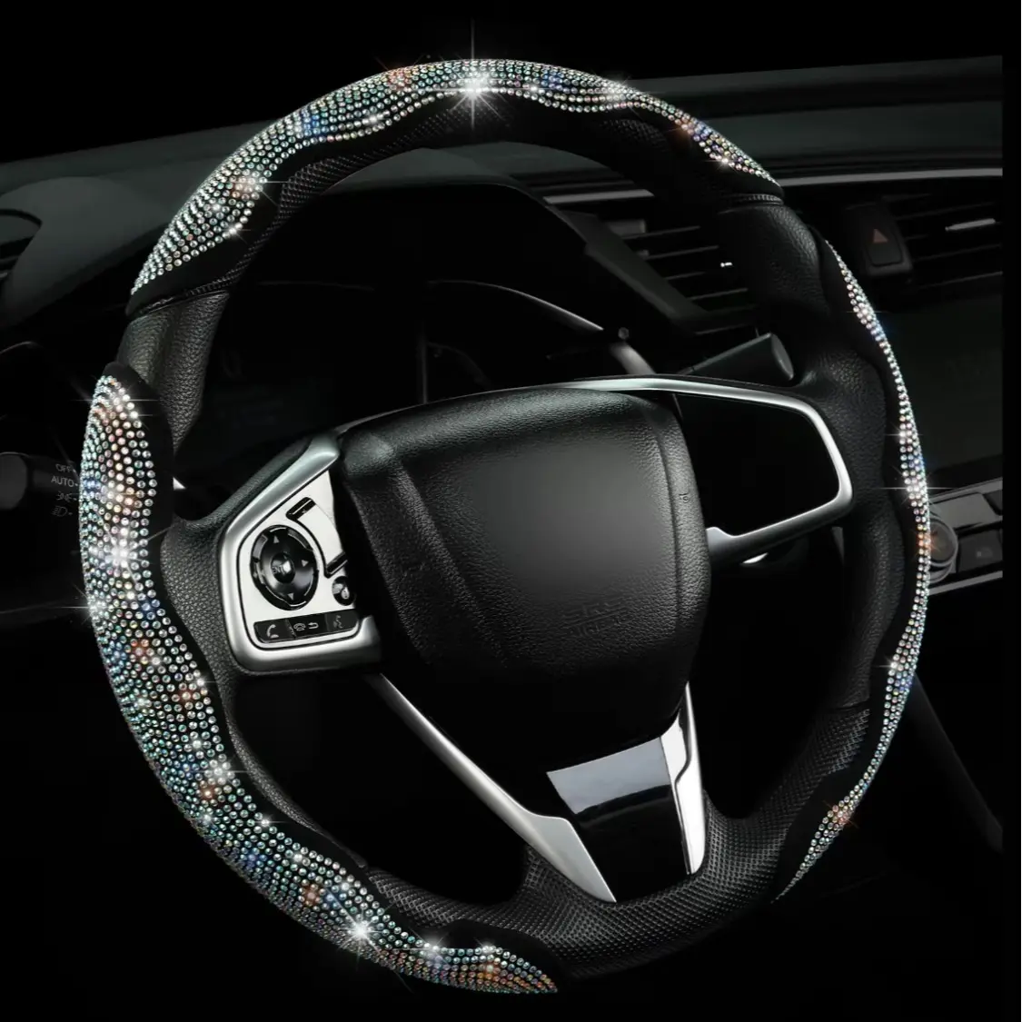·This Universal Rhinestone Steering Wheel Cover is ultra-thin and anti-slip. It adds a touch of luxury with its crystal design. Perfect for car decor, it enhances the interior of your vehicle.