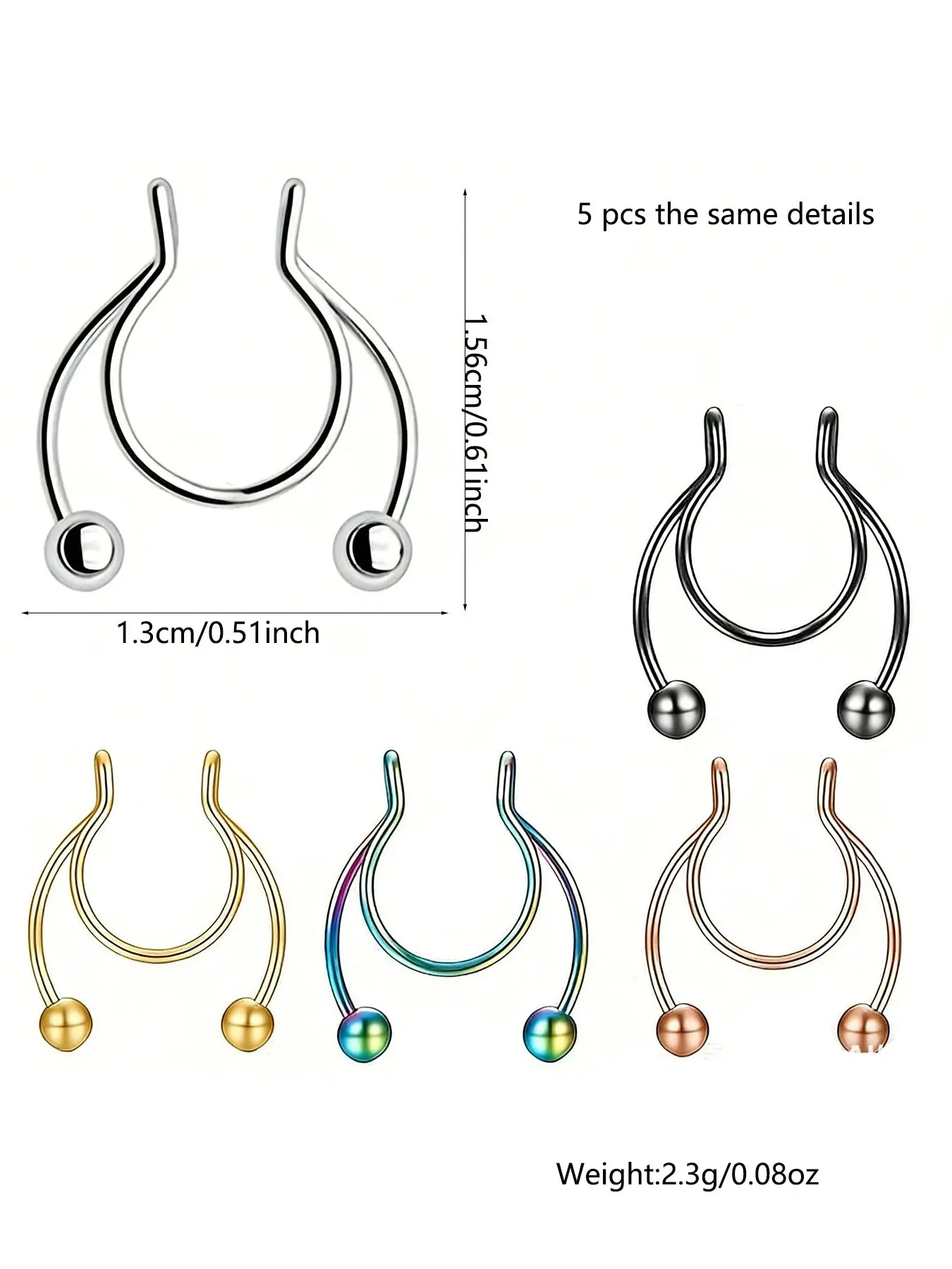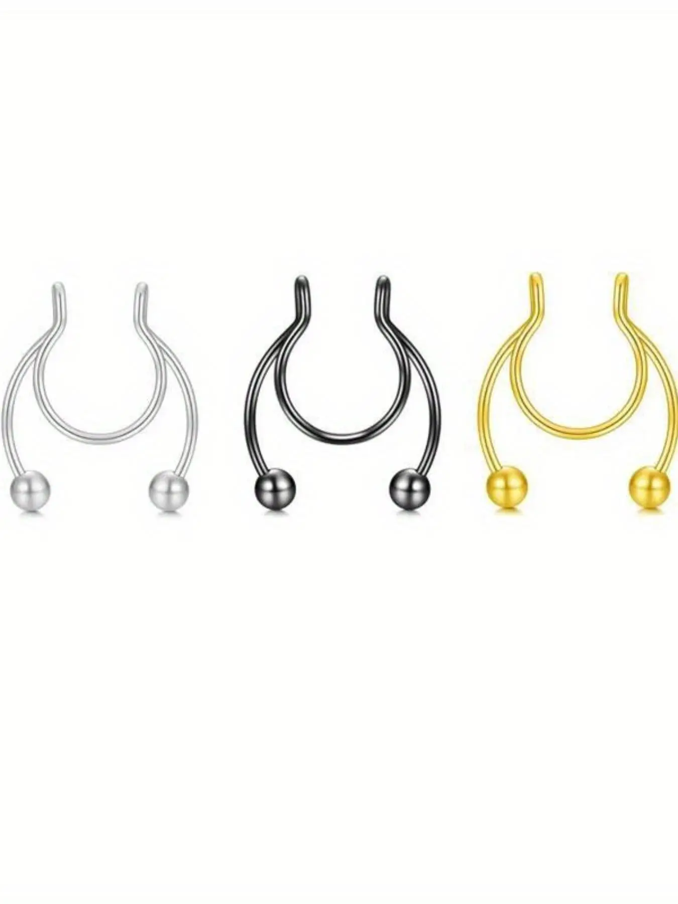Horseshoe Fake Nose Ring Set, U-Shaped False Septum Rings, 316L Stainless Steel Non-Piercing Jewelry, Casual Style for All Seasons