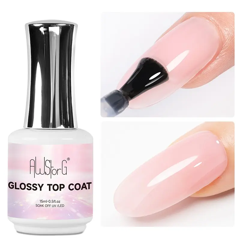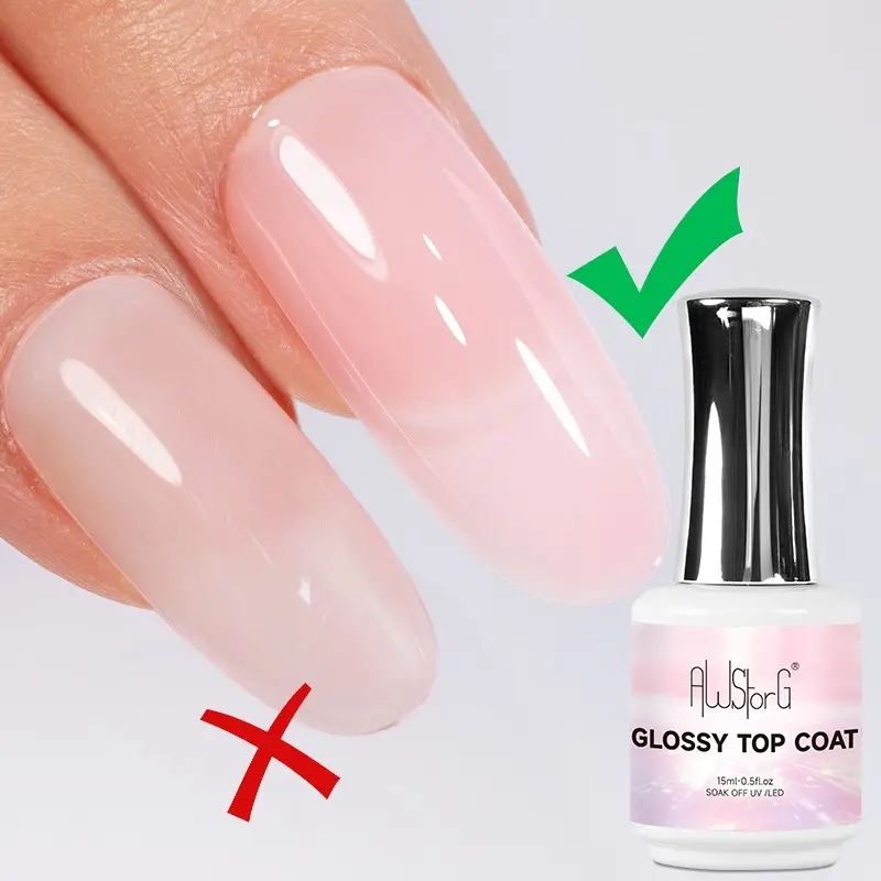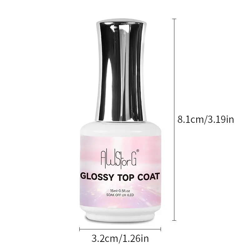 AWStorG 15ML Glass Effect Top Coat Gel, Anti-Scratch Durable Nail Care, High Shine,Long-Lasting Protection for Gel Nails, Suitable for Manicure and Pedicure