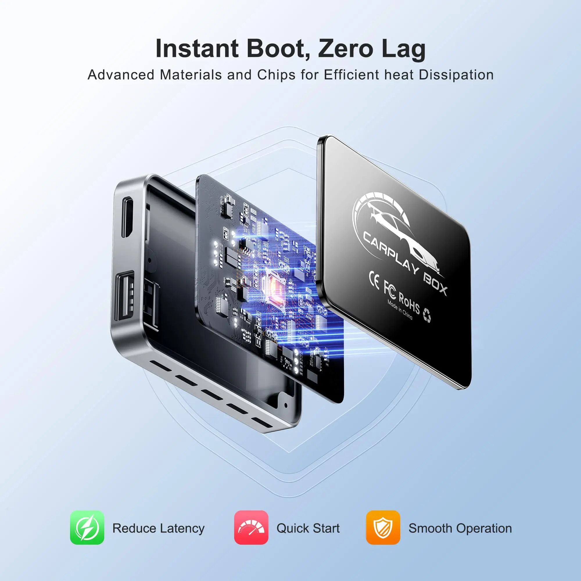 ·Wide Compatibility CarPlay AI Box – Plug & Play:This carplay AI box is compatible with most factory wired CarPlay vehicles.A reliable wireless carplay adapter solution for users who want video, navigation, and wireless freedom in one compact box.