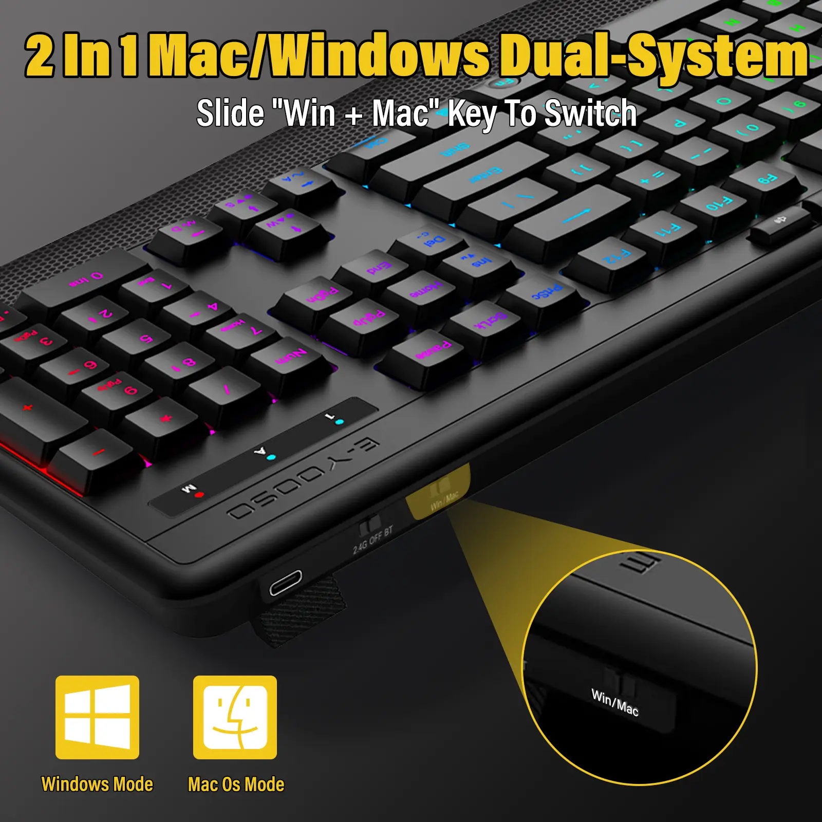 Gaming Features: RGB Backlit (8 Modes) + WIN-Lock + Multimedia Keys